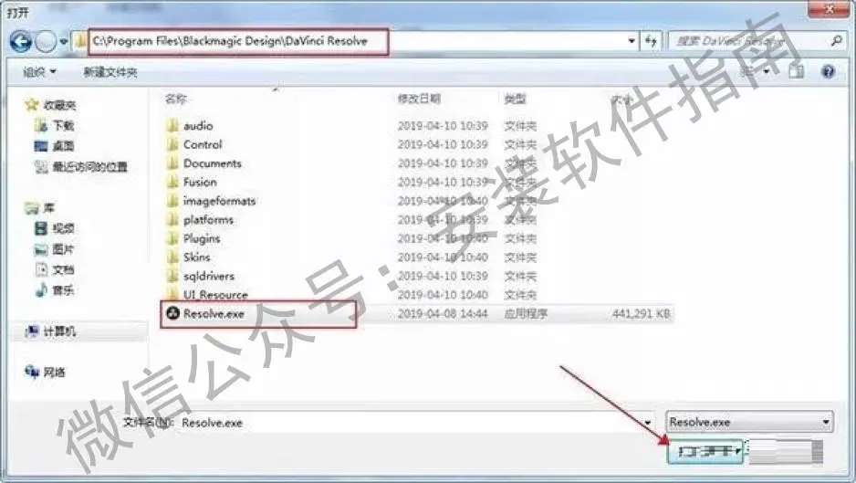 7.找到软件安装目录下的Resolve.exe文件,并打开。
