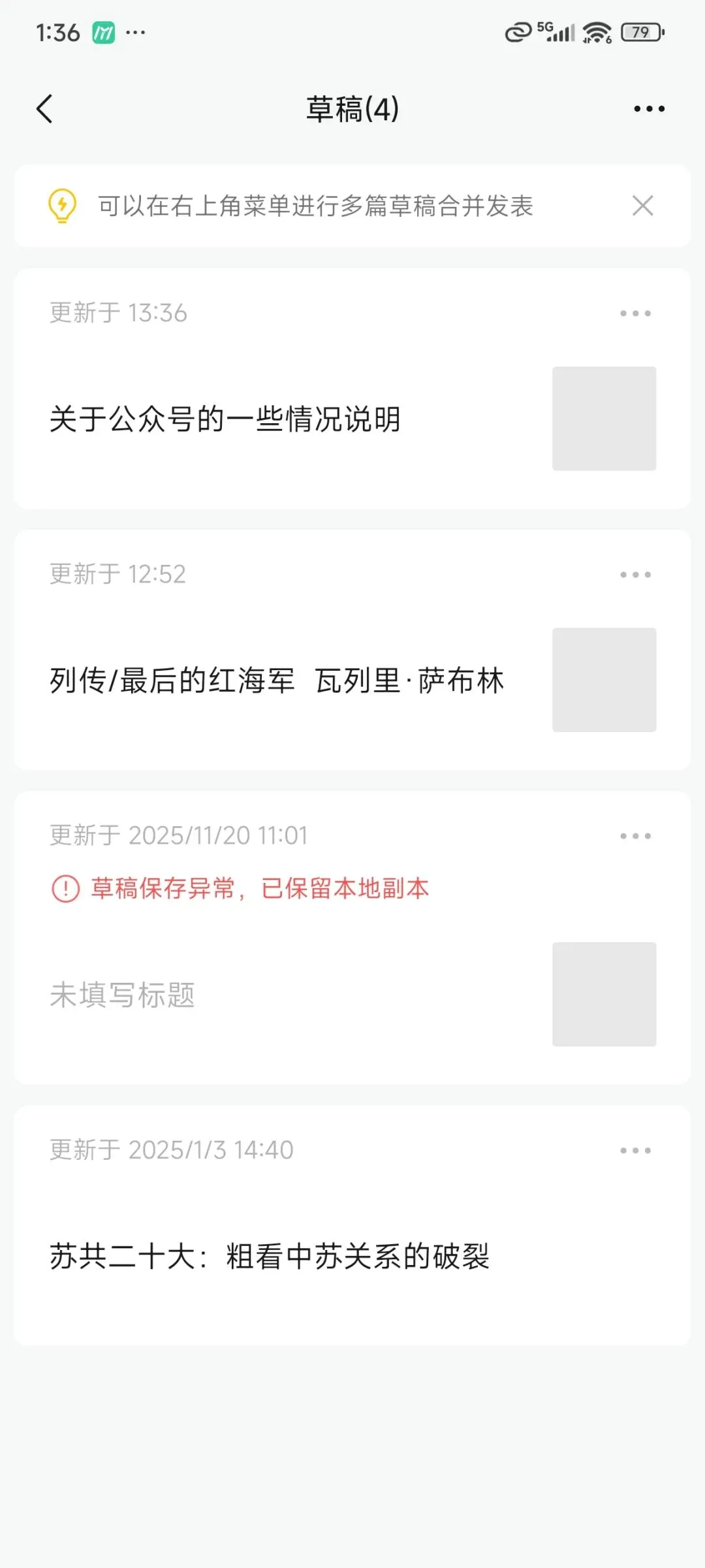 发表前夕,我得知另一位同样在gzh创作人文类文章的朋友账号被封禁,我没太在意,修订结束后把文章发上平台审核,又有俩位朋友在讨论组里抱怨自己的gzh被警告,我有些心悸了。然后就是平台的打回通知,文章存在敏感内容,我试着修改了一些,但是依旧无法通过。于是这篇耗费无数精力的文章只能躺在草稿箱中当仓管了。