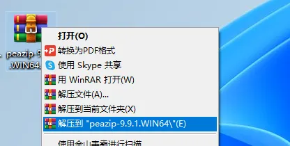 1.将下载好的压缩包鼠标右键选择【解压到peazip-9.9.1.WIN64\】。