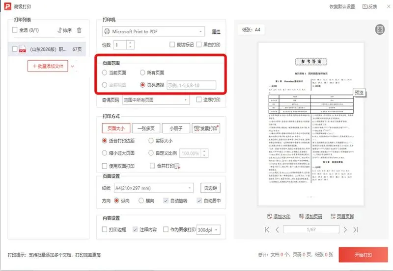 免费|一招搞定PDF文档拆分 老师们,分享一下我日常工作中用到的PDF多页拆分的方法,无需会员,完全免费,怒省一大笔。 一、打开要拆分的pdf文档,点击打印🖨️按钮: 二、打印机选项里选择输出为 PDF: 三、页面范围选择想要单独成页的页数: 四、点击上图右下角“开始打印”,选择要保存的位置重命名文档就ok了 发现更多精彩 关注公众号