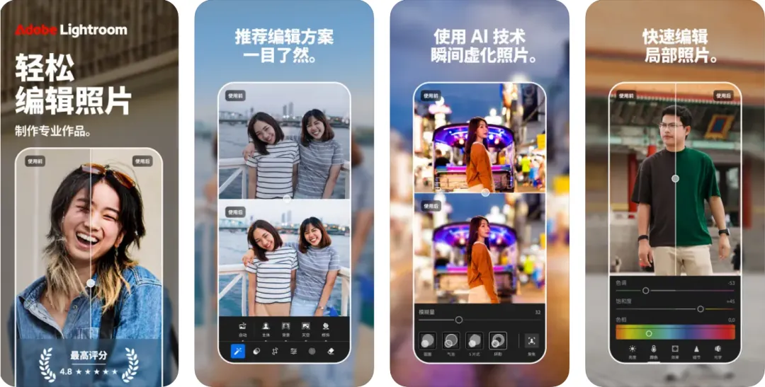 一个专业的修图app,废片都能调出高级感,对照片色彩、光线都很敏锐。