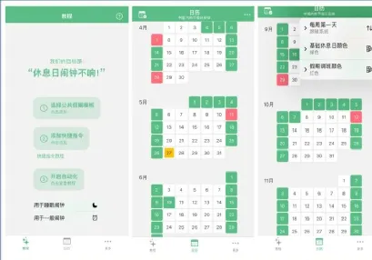 它简单易用,支持自定义放假上班的安排,你可以手动标记某一天是休息日还是放假日,其中默认基础休息日是绿色颜色显示,假期调班安排是红色颜色显示,你也可以修改显示颜色。