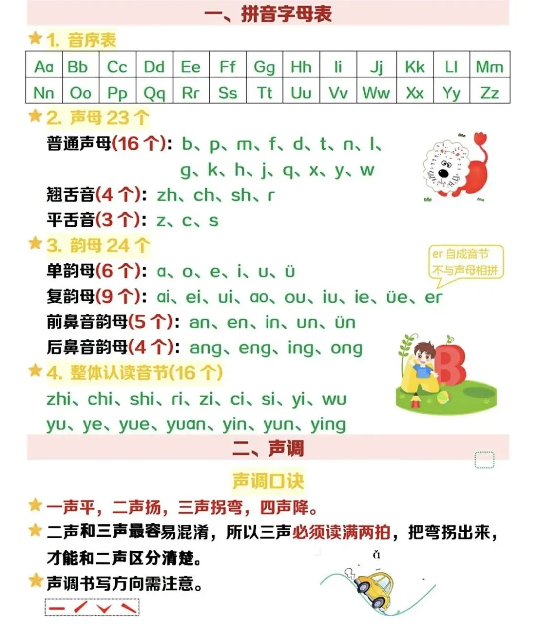 拼音字母表打印版免费下载|幼小衔接必备!拼音知识点梳理合集+练习题