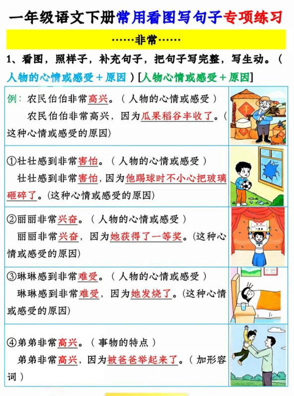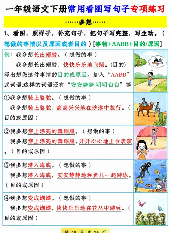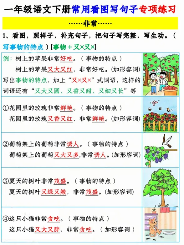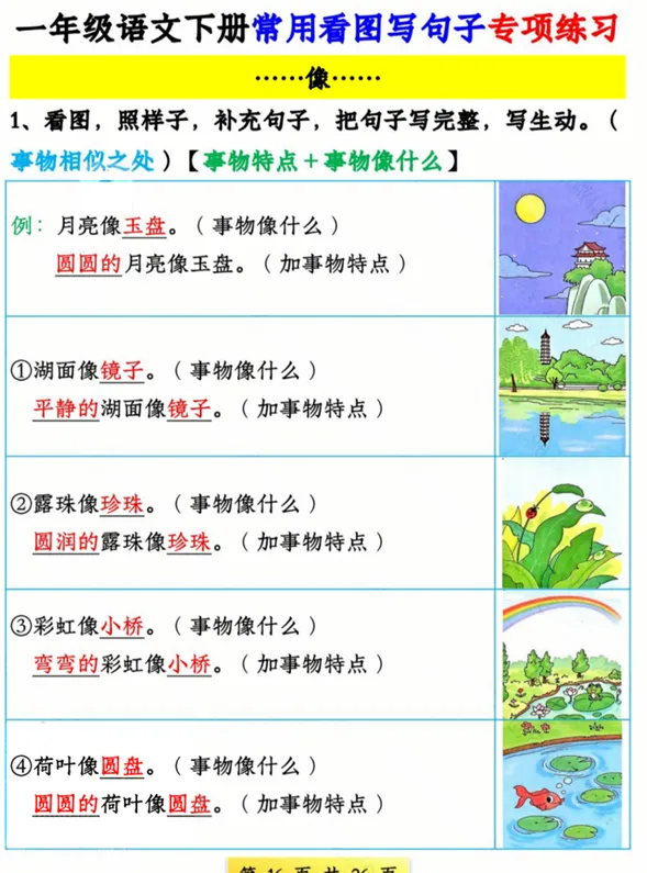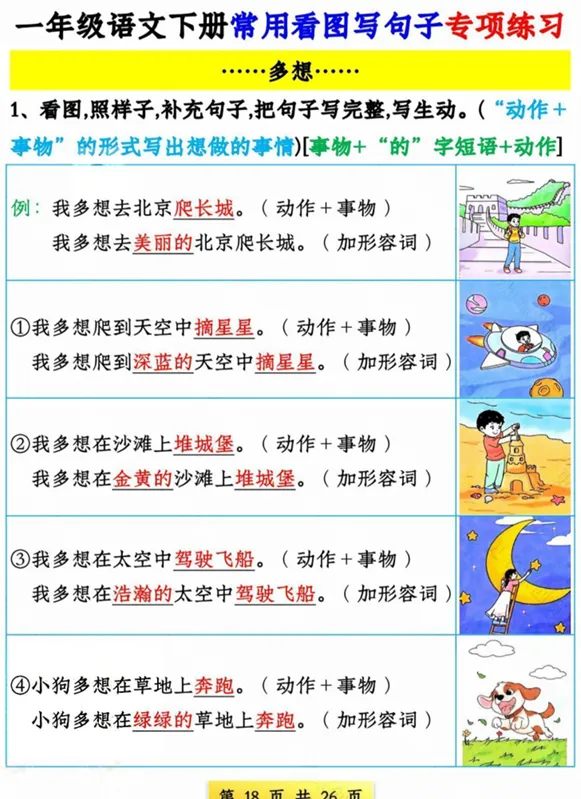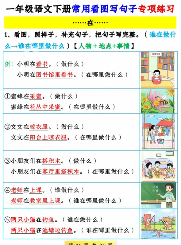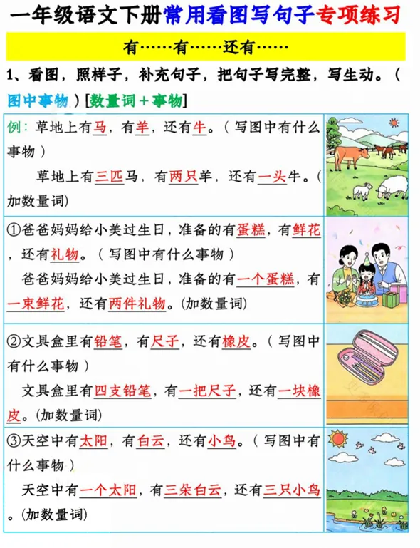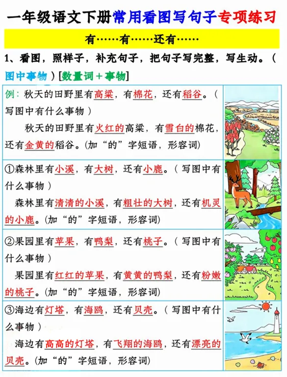 一年级语文看图写句子专项,有空白版,可打印