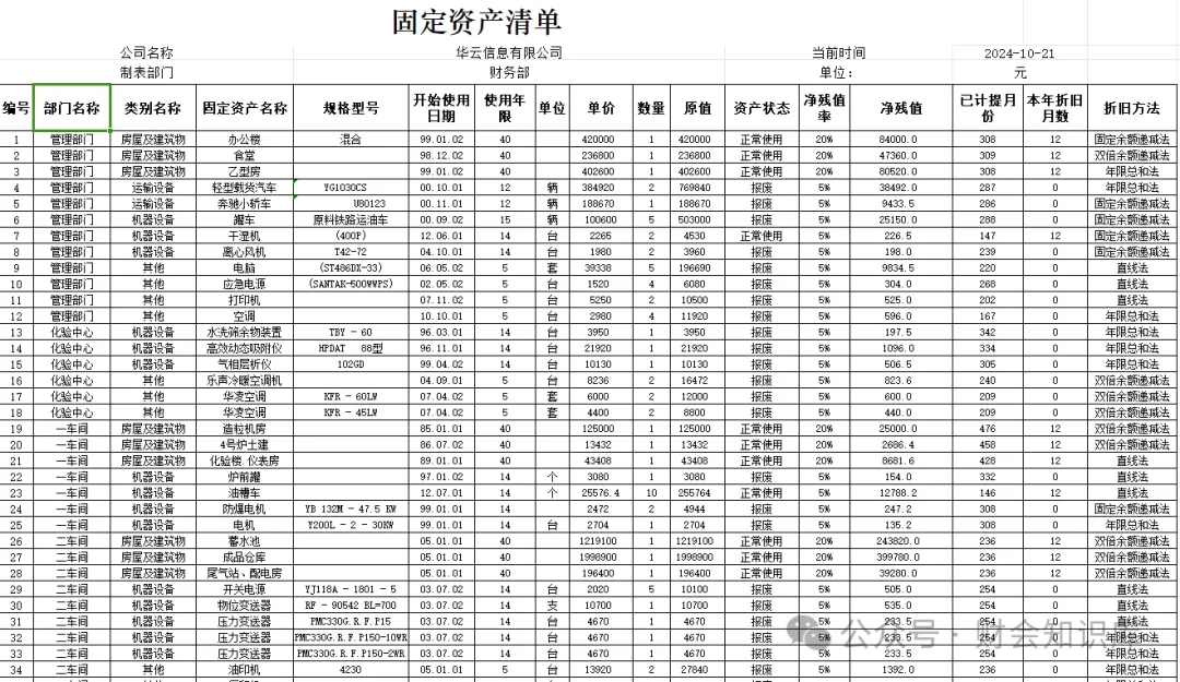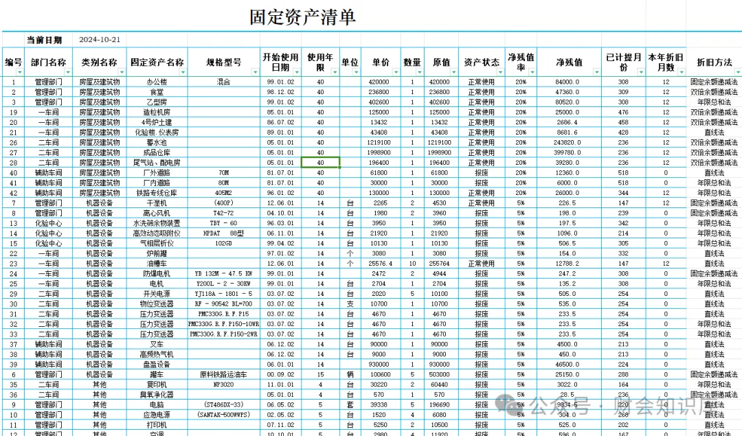 财务行政推荐收藏:固定资产台账模板excel(带公式)新人拥有也能轻松做好固定资产管理工作