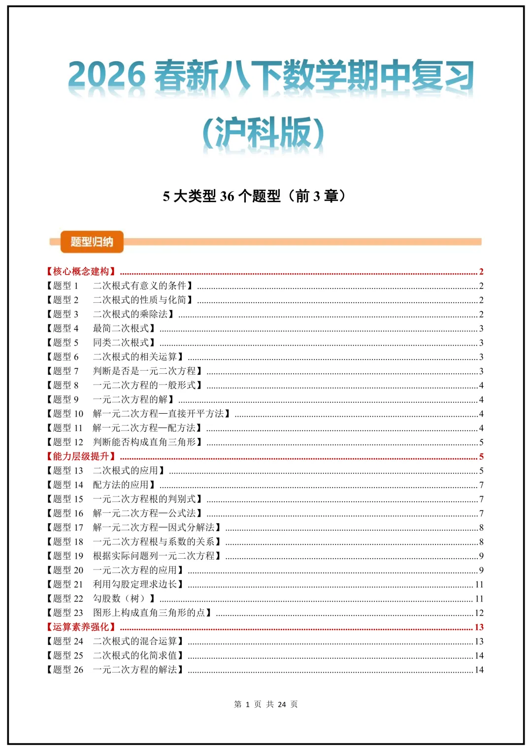 2026年新(沪科版)八下数学期中复习专项5大类型50个题型,考前必刷题,可打印下载!