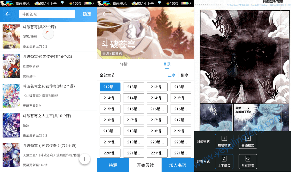 作为一名从来不看漫画的油腻中年来说,将所能记住寥寥无几的漫画名全部搜索以一遍均能找到,看来书源多还是挺爽的、进入阅读页面后还能对翻页以及显示进行调节,测试的匆忙手一哆嗦也就忘记留意有没有离线缓存了。