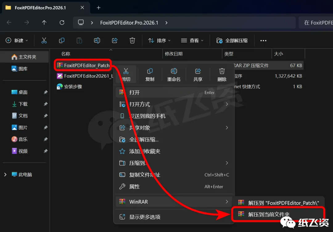 10.右击[Patch]选择[解压到当前文件夹]