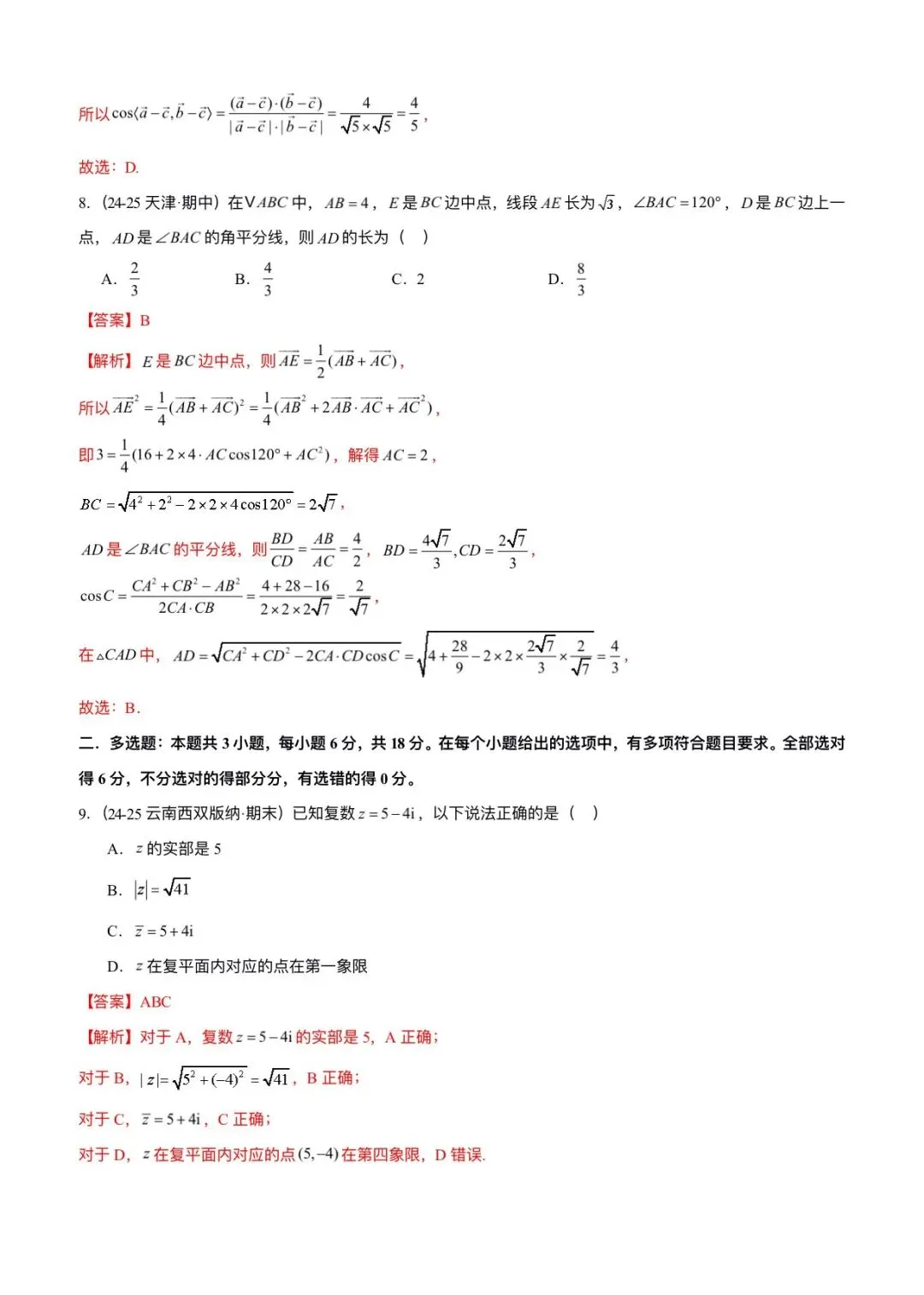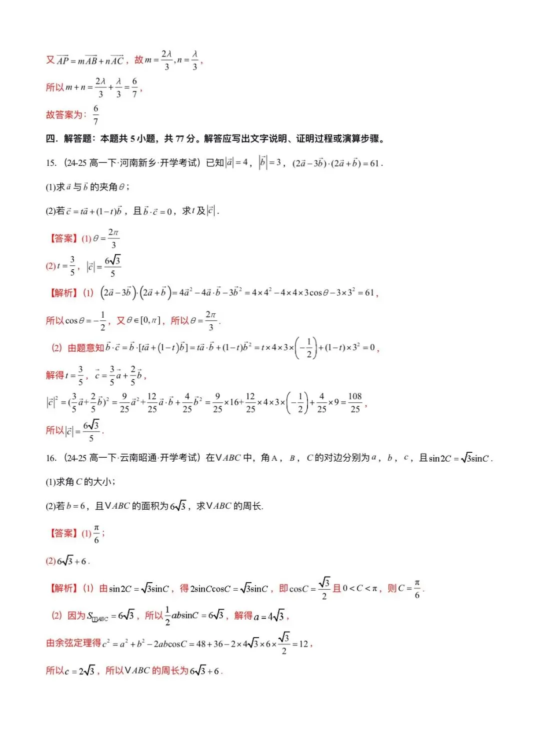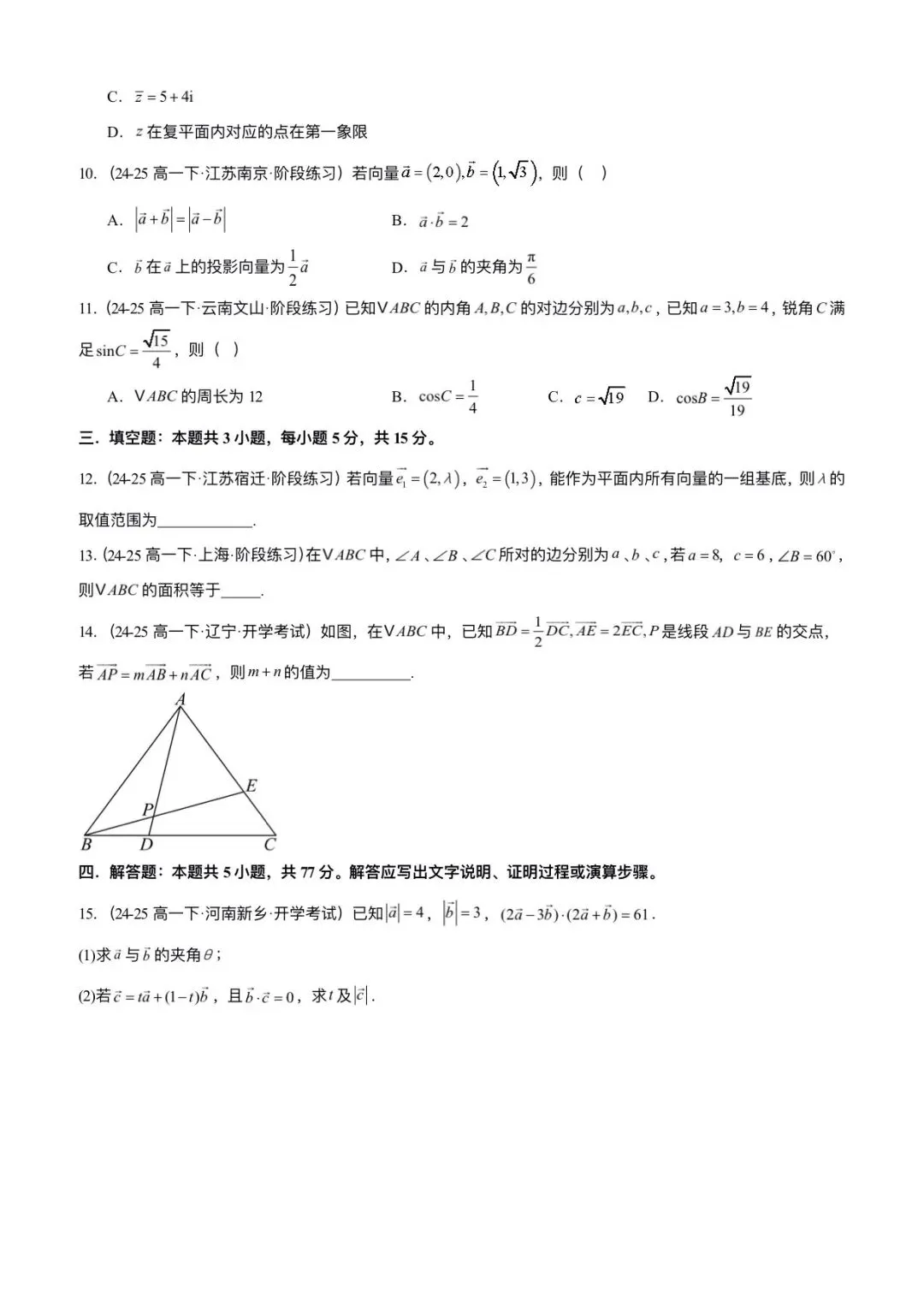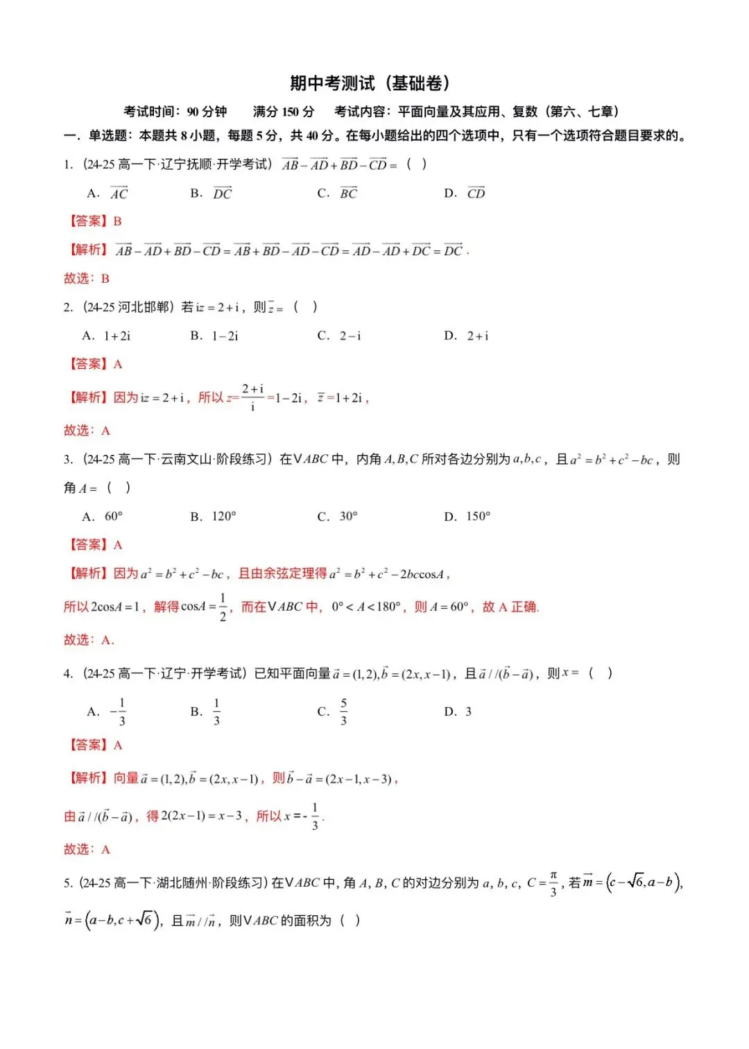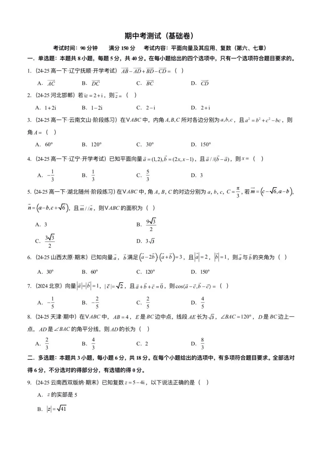 2026新版高一下册必修二册数学(人教A版)期中考试(含答案解析共11份)电子版可打印下载!