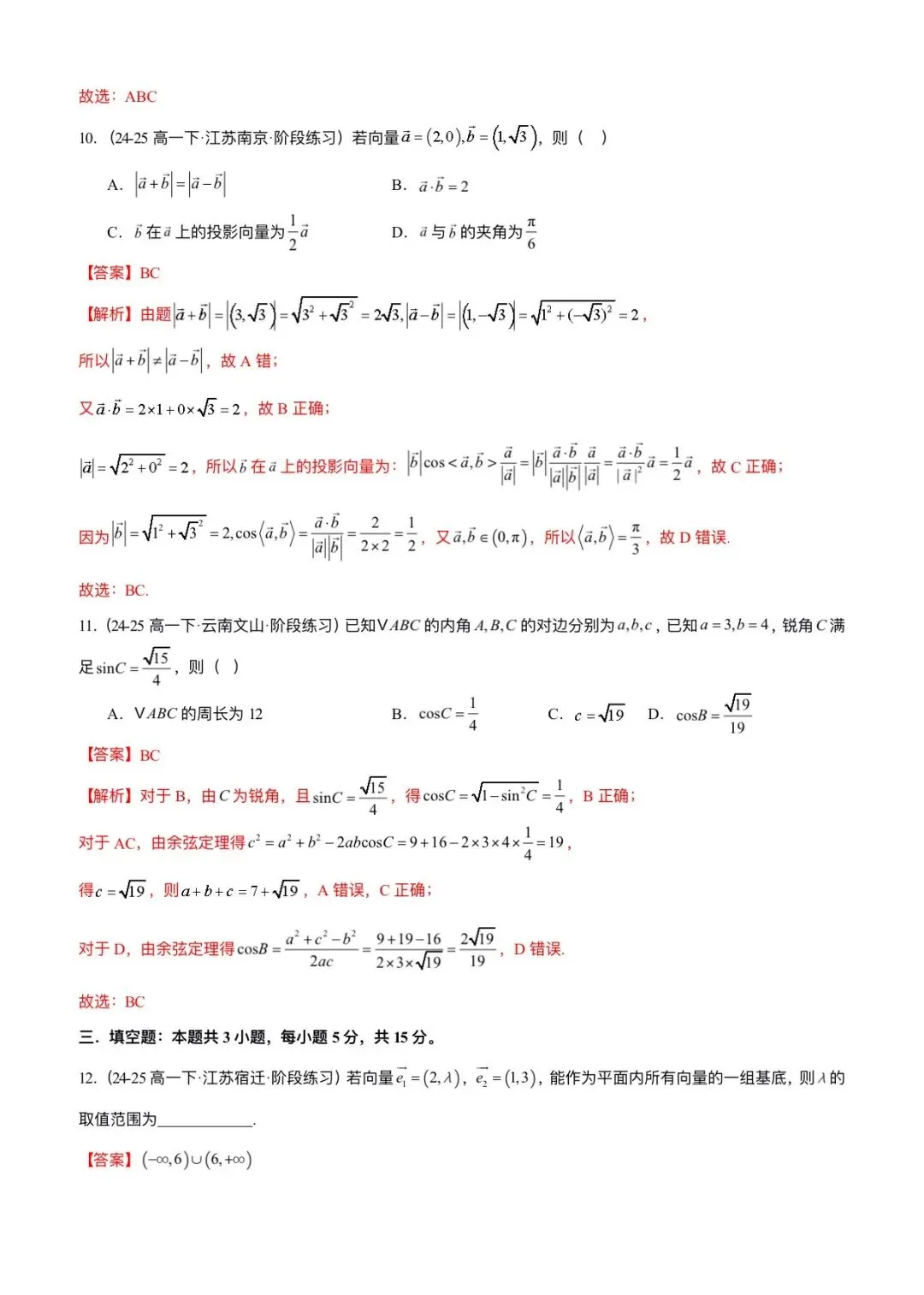 2026新版高一下册必修二册数学(人教A版)期中考试(含答案解析共11份)可打印下载!