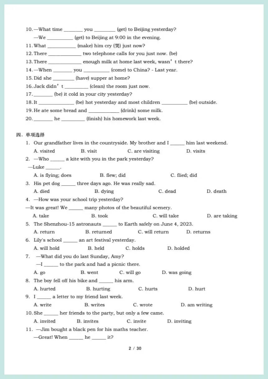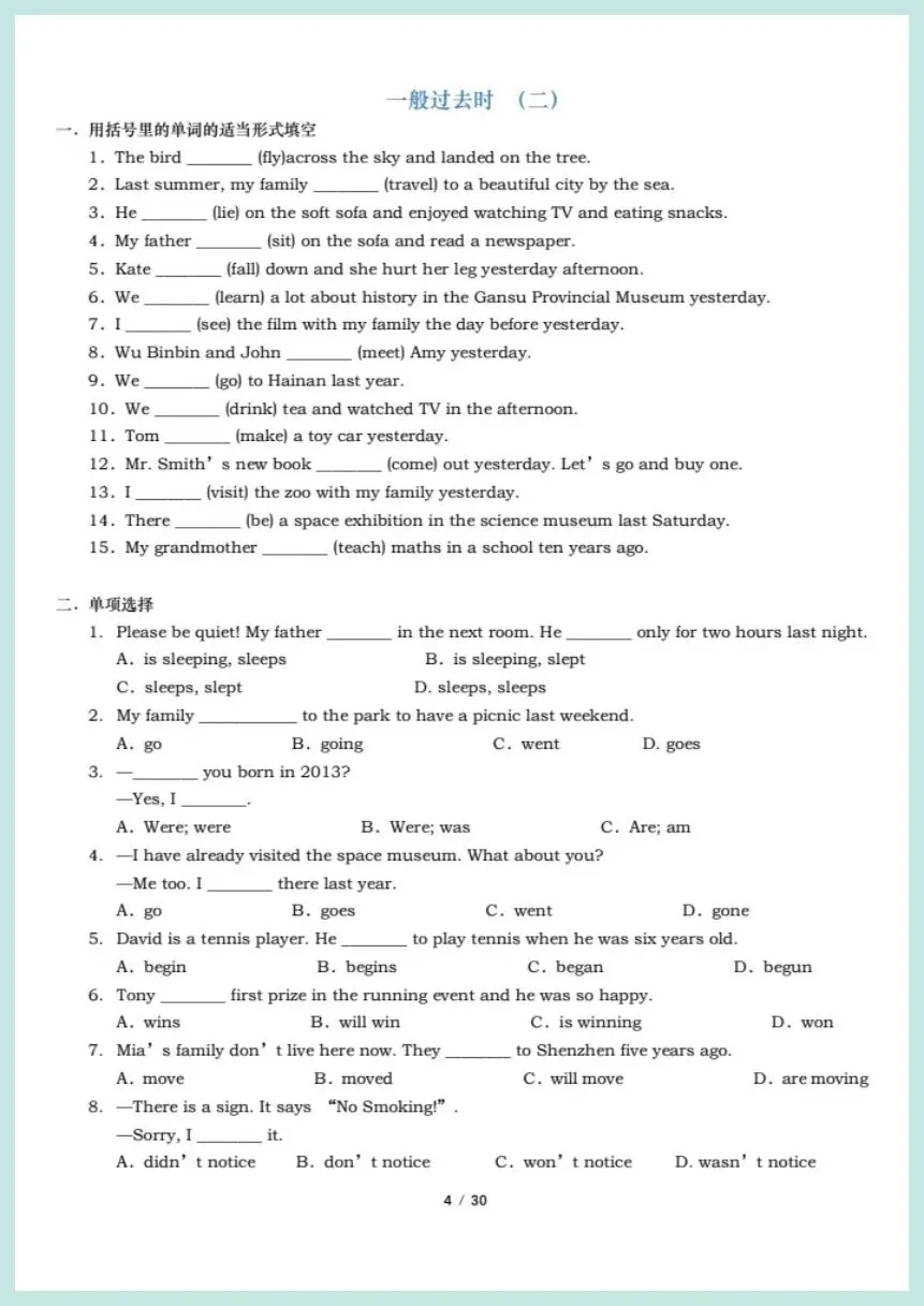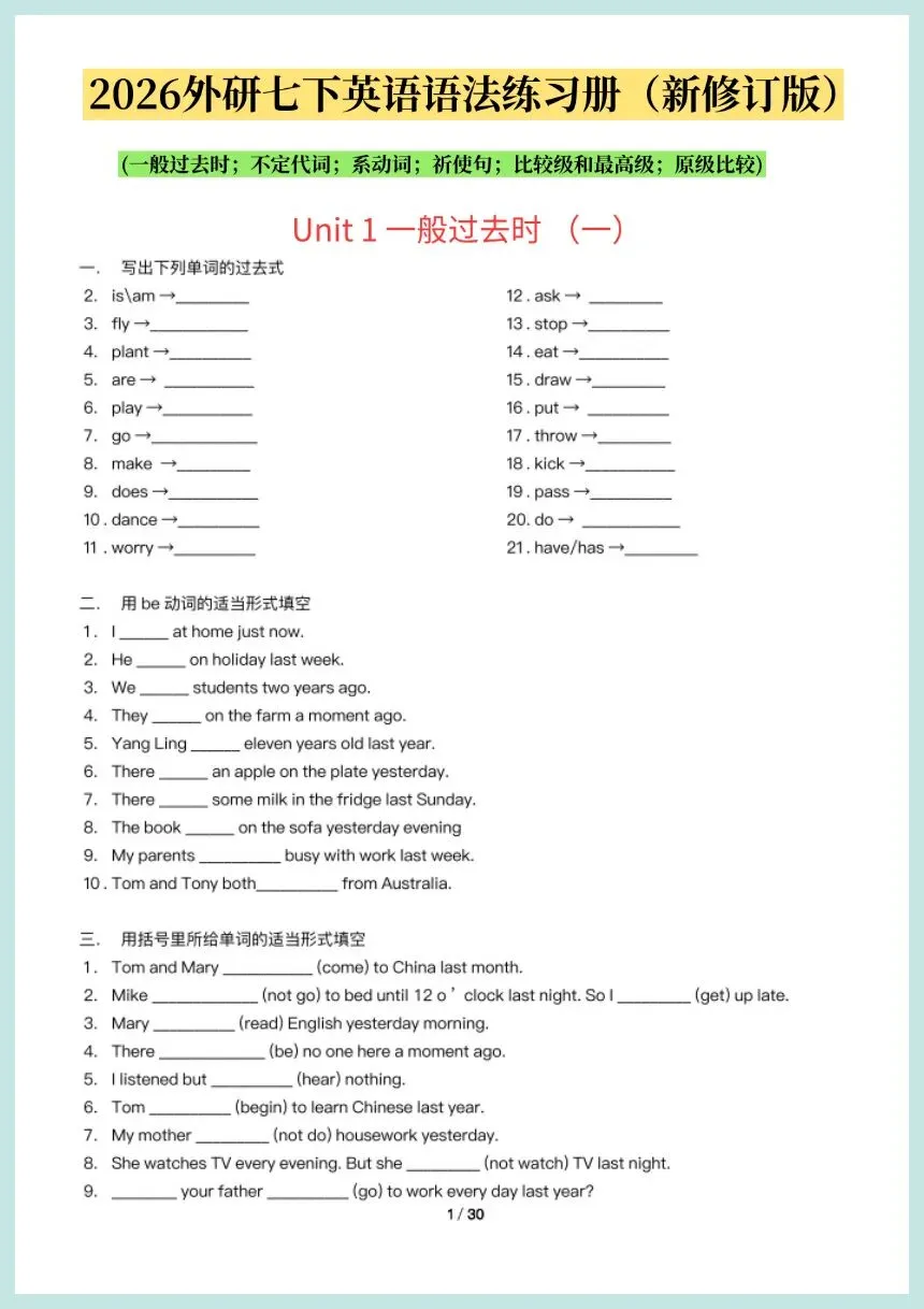 新修订版|2026春新(外研版)七年级下册《英语》语法练习题+答案,电子版可下载打印!
