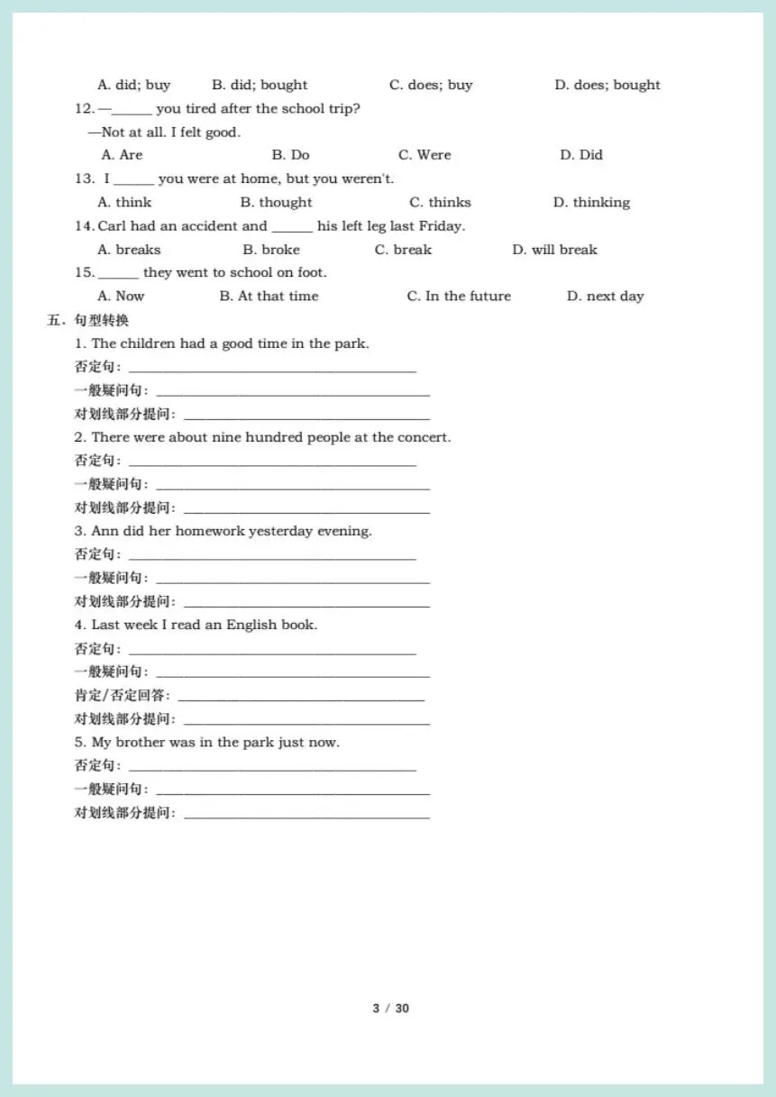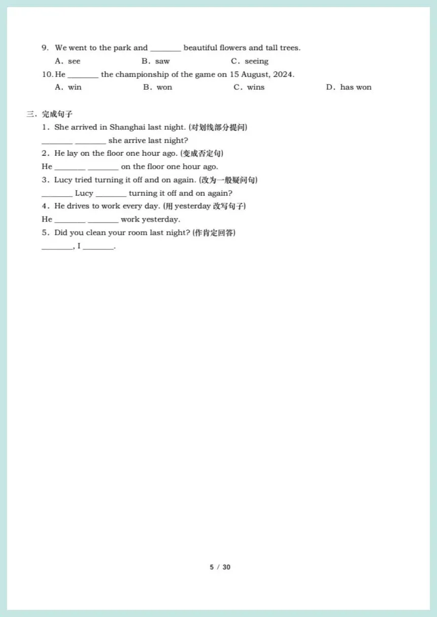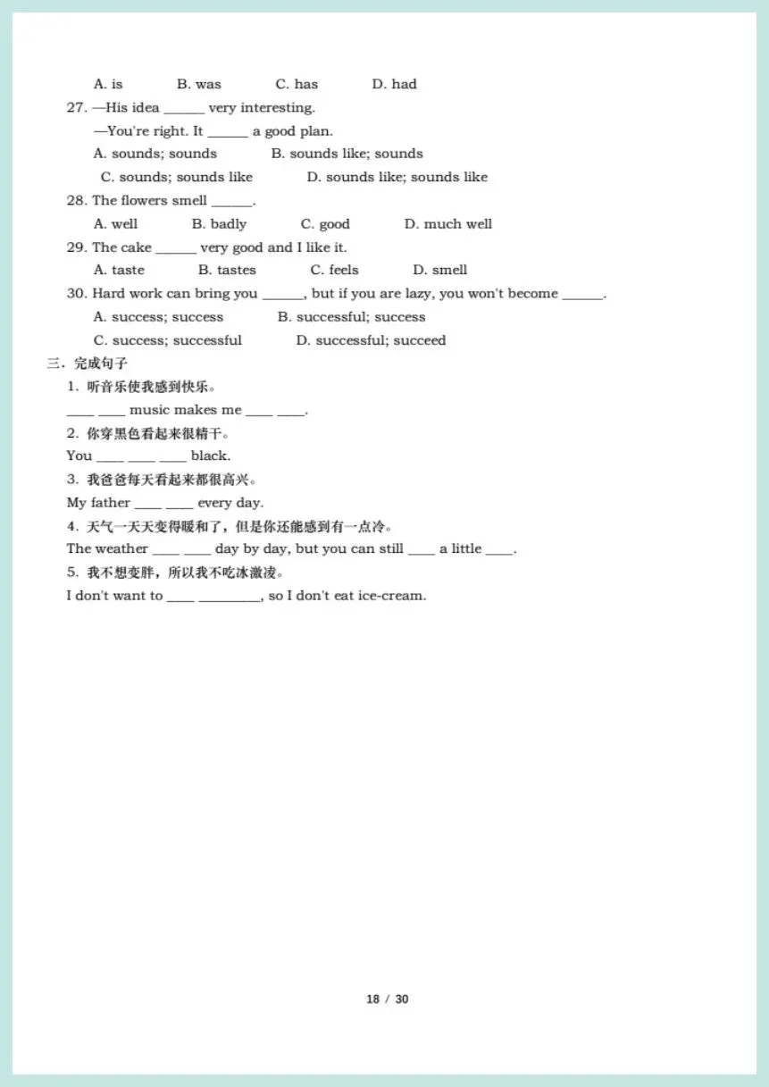新修订版|2026春新(外研版)七年级下册《英语》语法练习题+答案,电子版可下载打印!