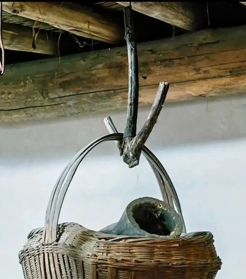 大哥大姐们,这挂钩配着竹篮在当年那可是冰箱的替代品,那个年代谁家有冰箱啊,剩菜剩饭放不住咋办,就把这竹篮挂在房梁上,把吃的往里一放,老鼠够不着,猫狗也偷不了,冬天就挂在不生火的屋子里,既防着小动物又能冷藏,这法子可实用了,现在家家都有冰箱了,这老物件就没人用了,可那时候每顿饭后把剩菜用篮子挂起来的动作,已经刻在骨子里了,那个年代过日子就是这么精打细算,一点东西都舍不得浪费。