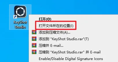11.在桌面上找到并选中”KeyShot“软件图标,右键选择“打开文件所在位置”