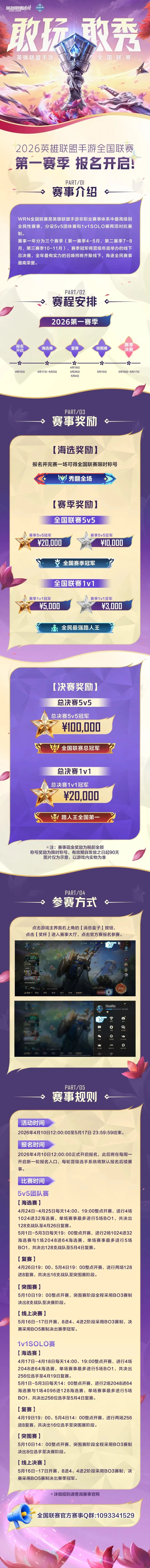 2026英雄联盟手游全国联赛第一赛季报名今日正式开启!5V5团队赛,1V1SOLO赛双赛道并行,团队与个人皆可秀翻全场,期待各位召唤师的参与!