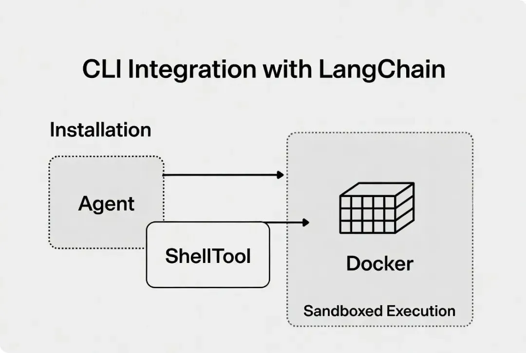 2. 完整CLI工具集成代码: from langchain_community.tools import ShellToolshell_tool = ShellTool()tools = [shell_tool]