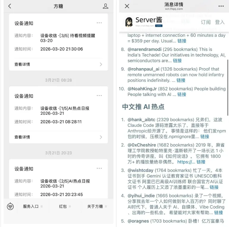 每天产出的日报全是筛过的高质量 AI 讨论,做内容追热点的灵感从里面找就差不多了。
