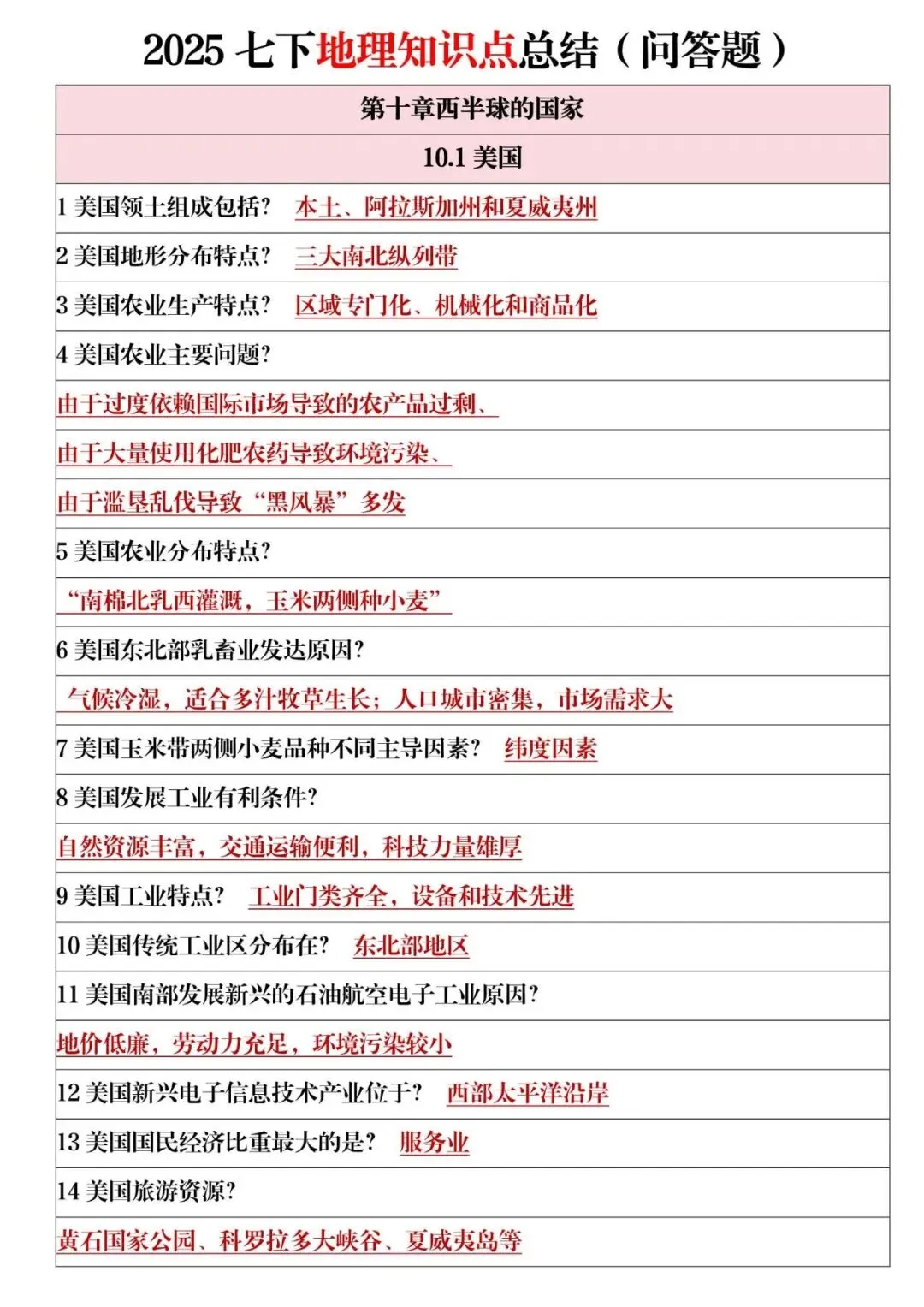 今天老师给大家整理了:地理大题不用慌!七下问答题总结,可打印背诵,电子打印版!