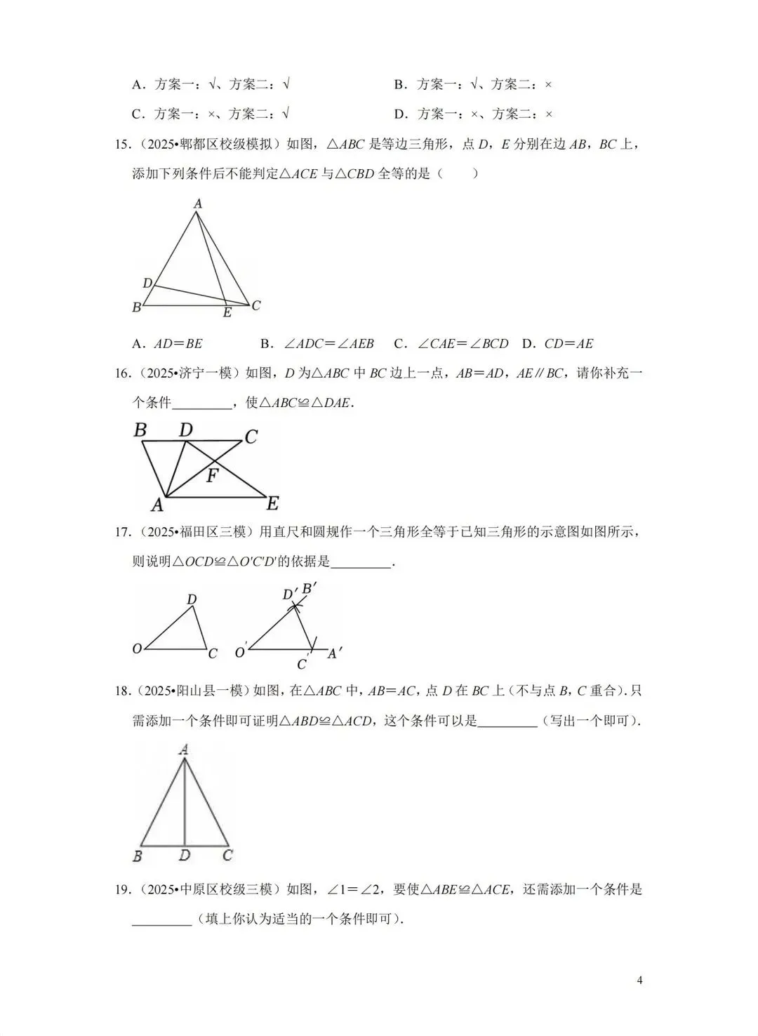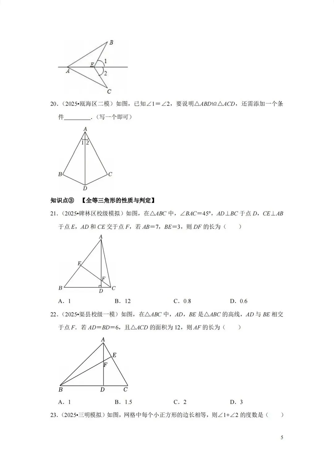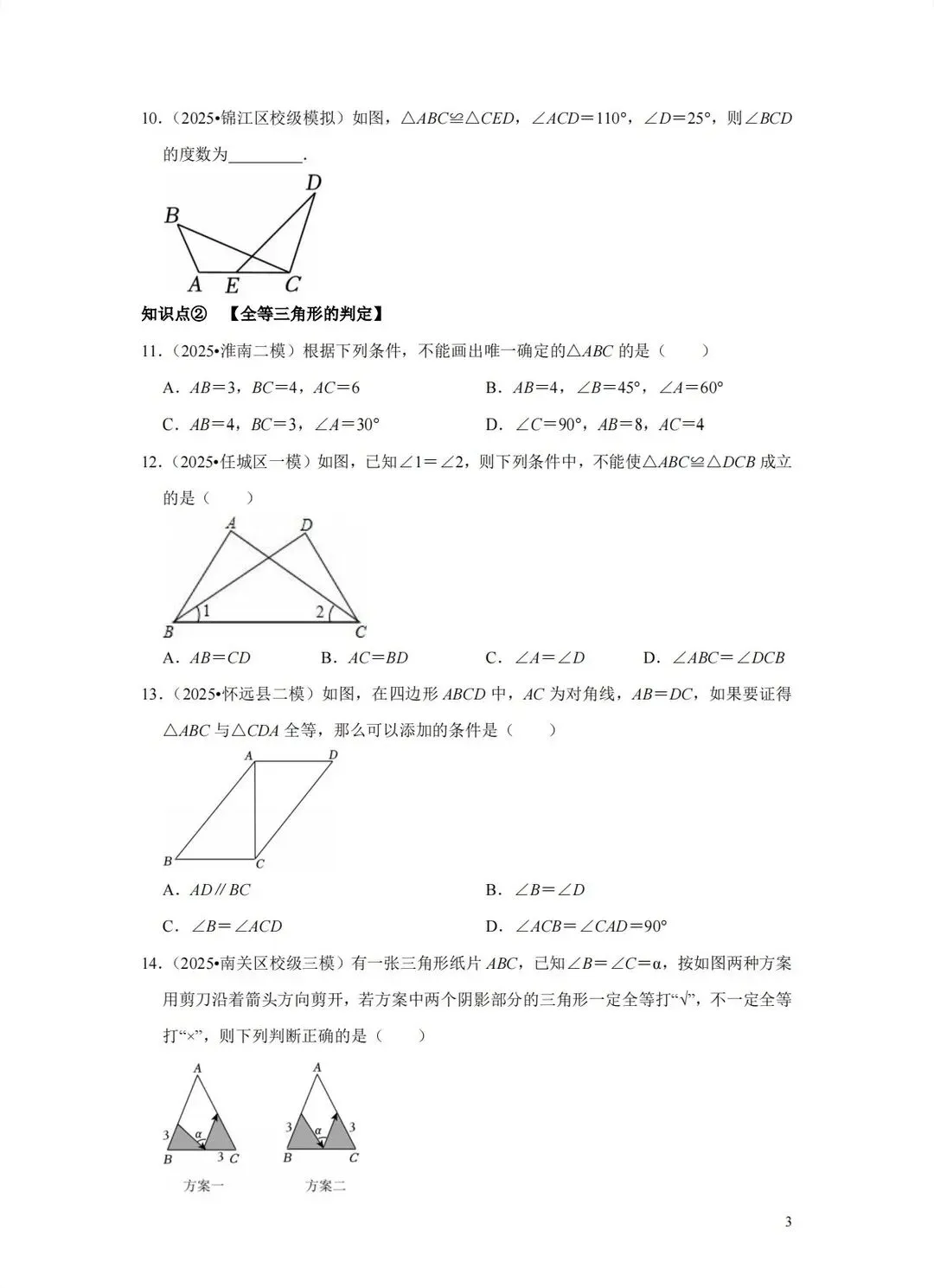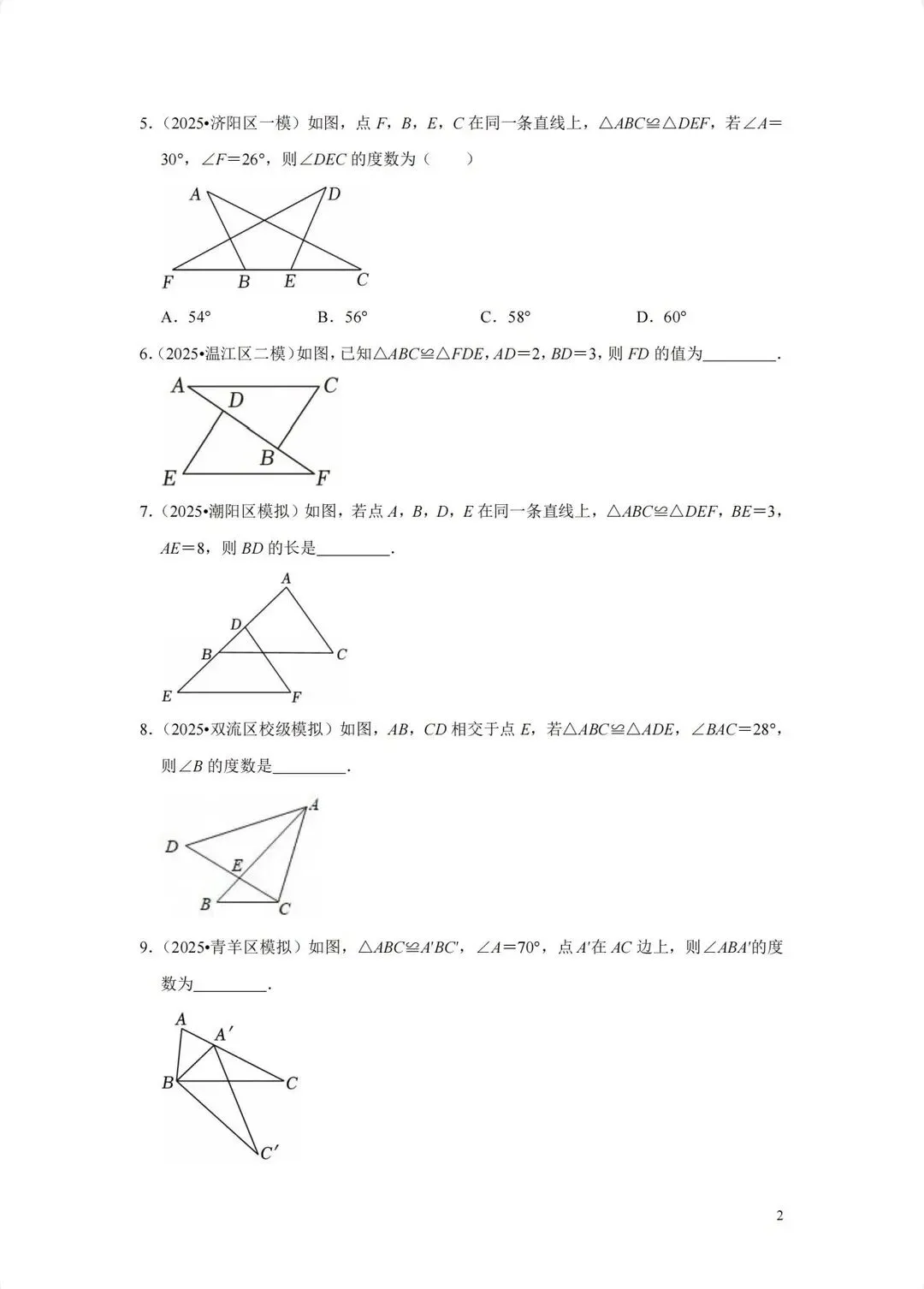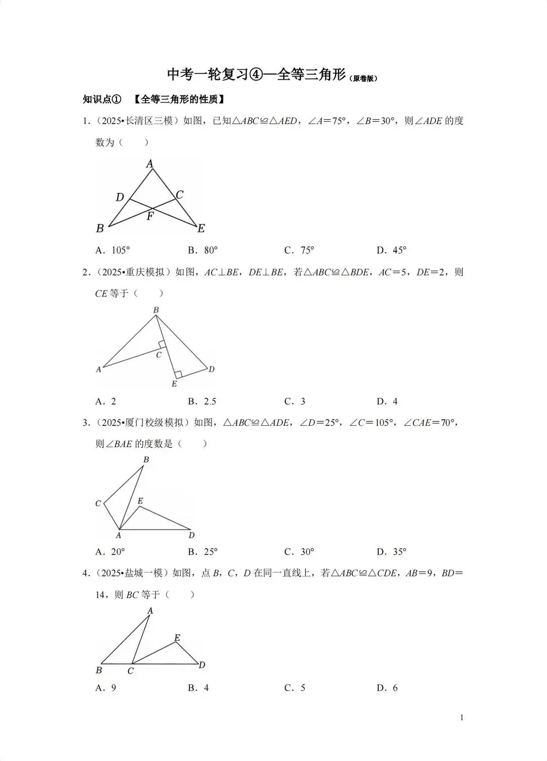 2026年中考数学一轮复习—全等三角形