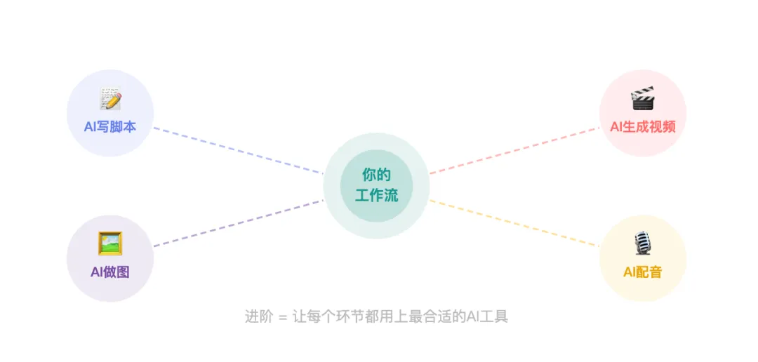 这篇文章教你一件事:组合使用多个AI工具,让每个环节都用上最强的那个。就像做菜不能只用一把刀,做视频也需要一套工具链。