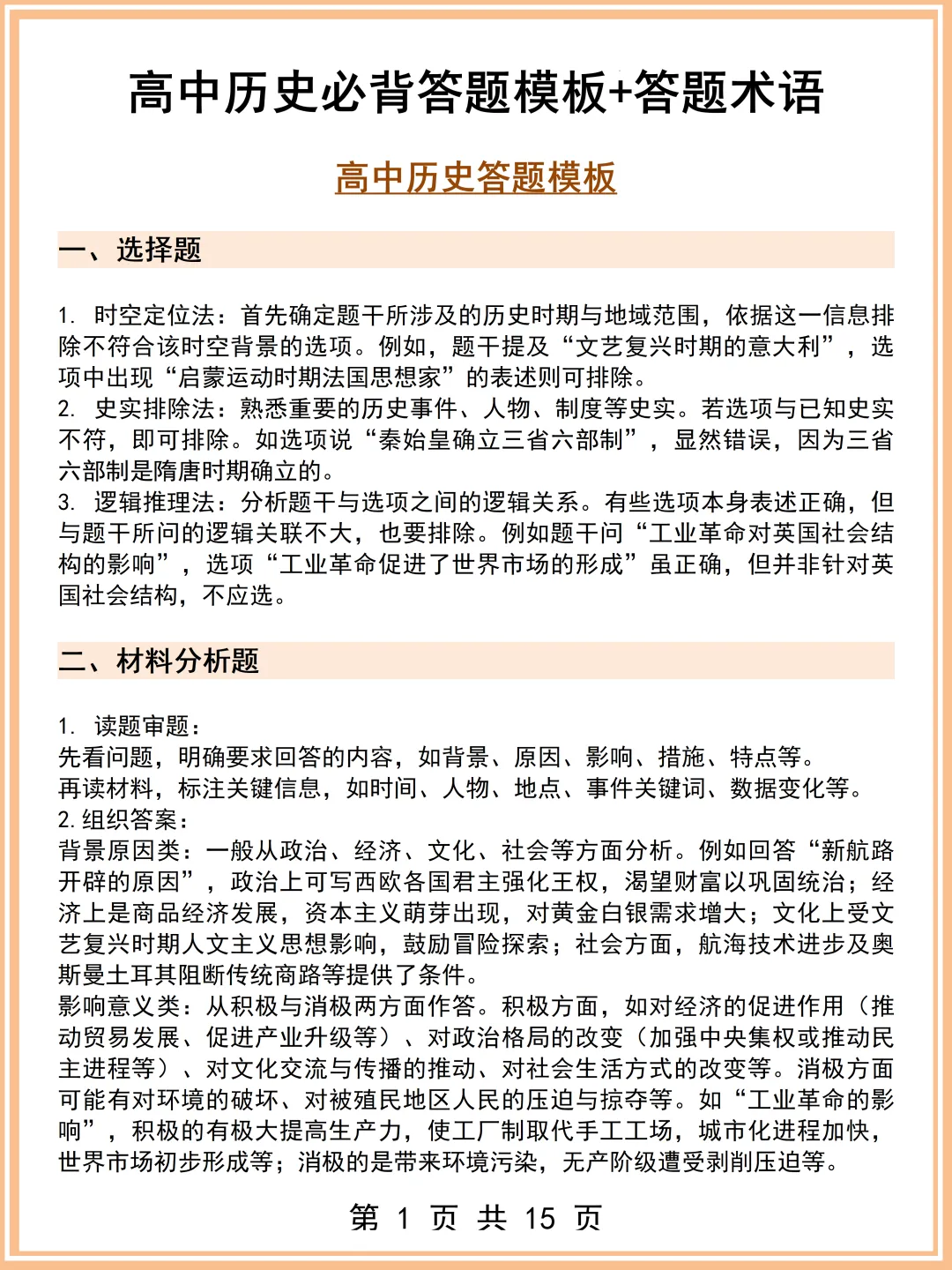 所以今天给大家整理了《高中历史必备答题模板》!建议人手一份