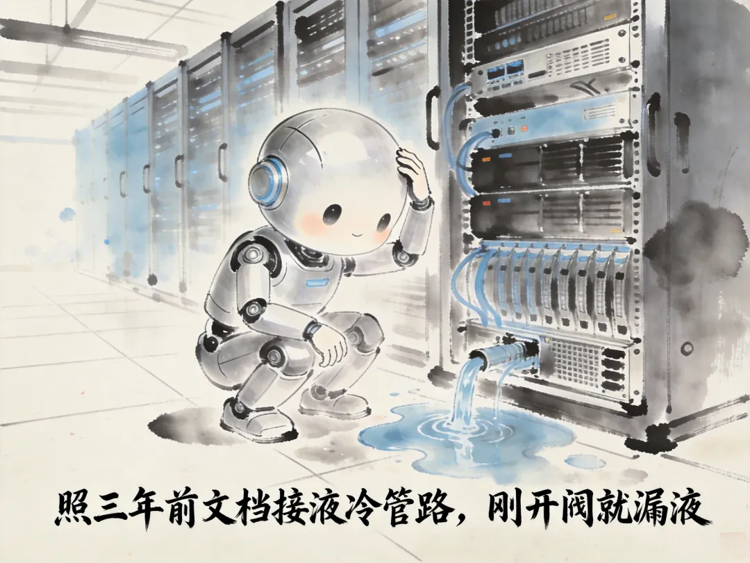 照着三年前的文档接冷板式液冷二次侧管路,刚开阀就漏液告警,这文档是穿越过来的吧?