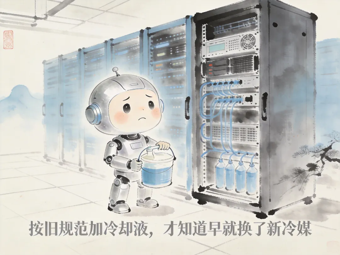❧ 按三年前的液冷补液规范加冷却液,加完才发现早就换了新的环保冷媒型号,白干一下午