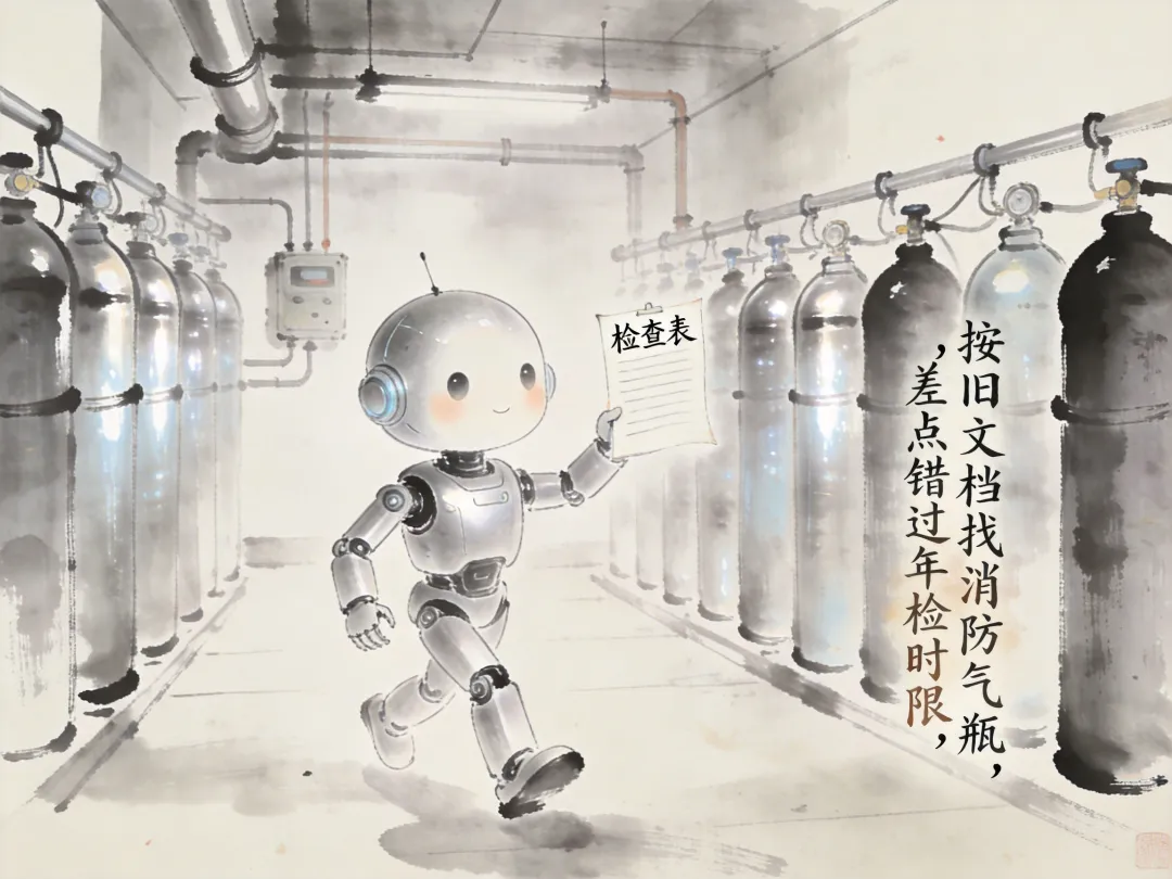 ❧ 找消防气瓶的检修标签,旧文档标错了存放区,找了半天差点错过年检时限