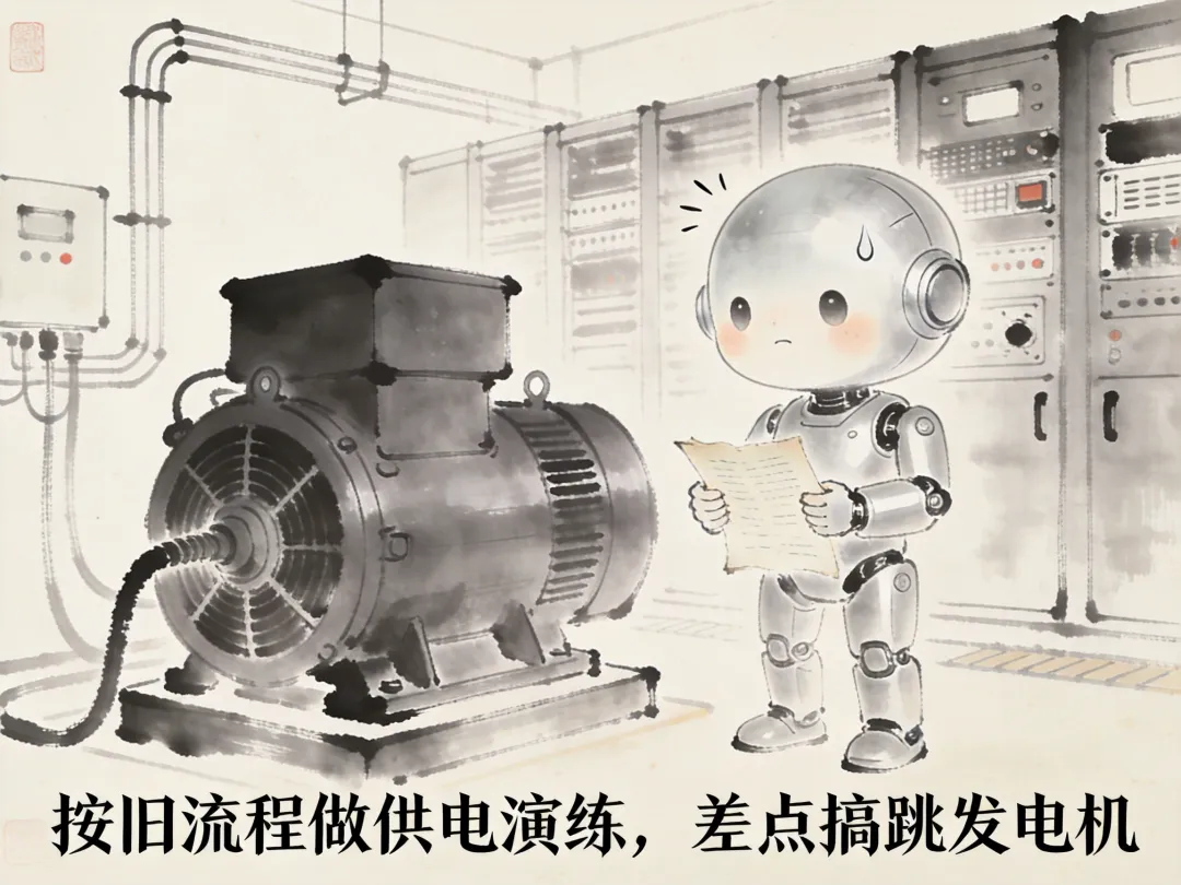 ❧ 照着旧文档做应急供电演练,合完闸才发现发电机的负载分配早就改了,差点跳机
