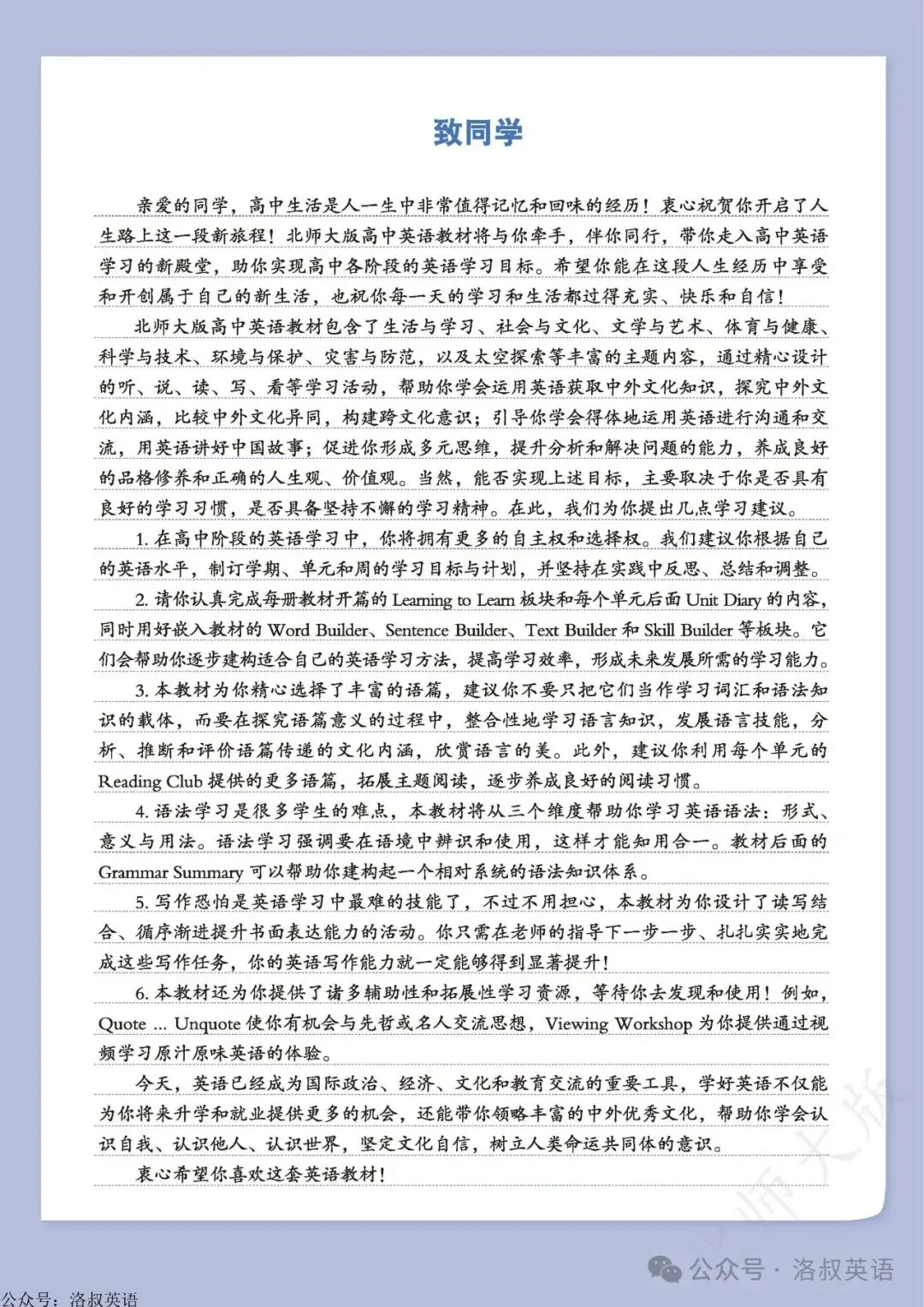 今天给大家分享的是:新版教材高中英语必修第一册(北师大版)电子课本已更新(彩色高清PDF,可打印)。完整电子版文章末尾可直接领取,无套路,欢迎收藏和下载。