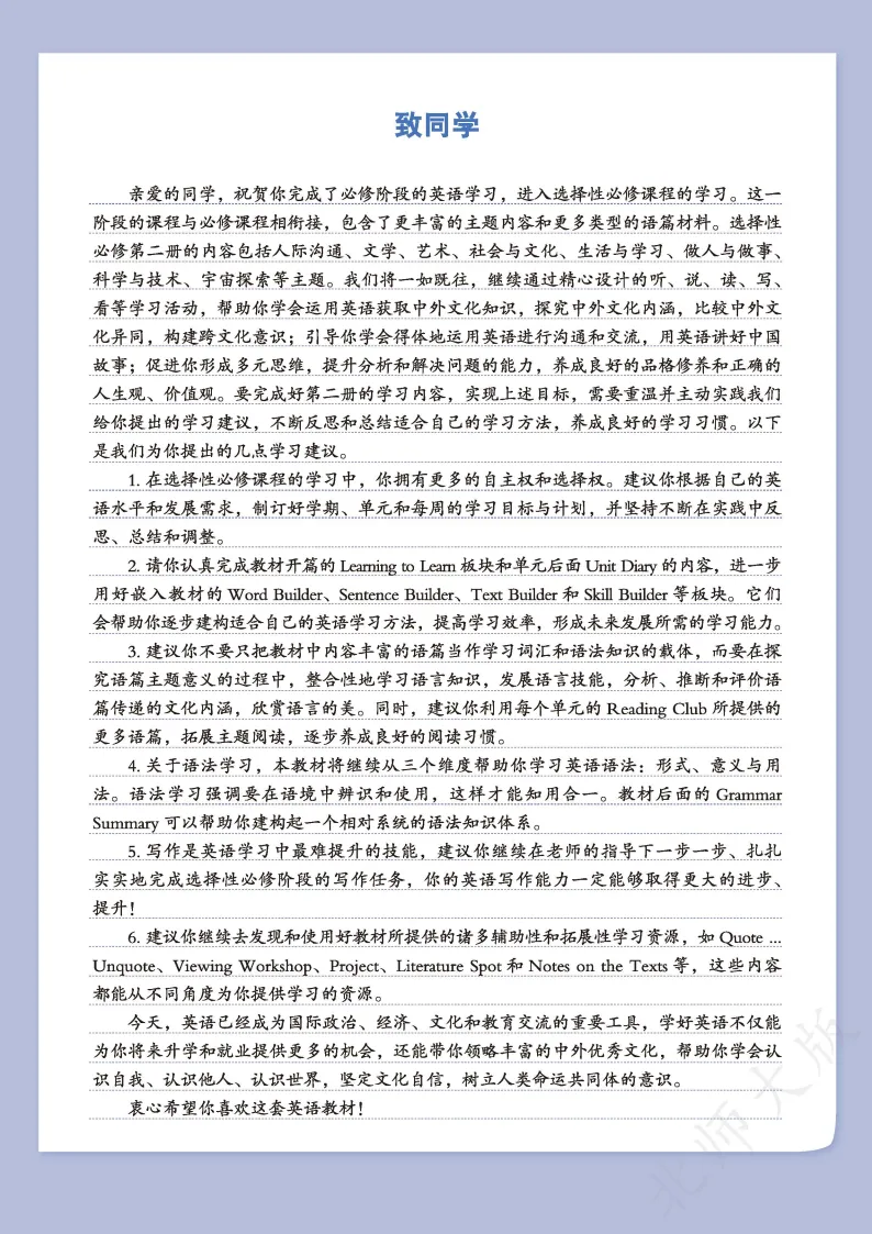 今天给大家分享的是:新版教材高中英语选择性必修第二册(北师大版)电子课本已更新(彩色高清PDF,可打印)。完整电子版文章末尾可直接领取,无套路,欢迎收藏和下载。