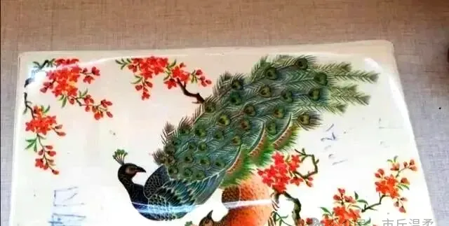 这个艳亮图案的就是搪瓷托盘,底色白,有红有绿,一只孔雀开屏,讲究点的家里来客倒茶必用它,小时候我奶奶柜顶一直搁着一个,平常舍不得拿出来,啥时候来了客人,托盘端茶点,搪瓷最不怕磕碰,角上掉漆照样用,吃席摆桌上最体面,奶奶叮嘱我端着慢小心滑手,那会儿谁家有一套这样的托盘,“有板有眼的”,现在各种盘子摆满超市,倒是没人记得再藏着等哪天再用。