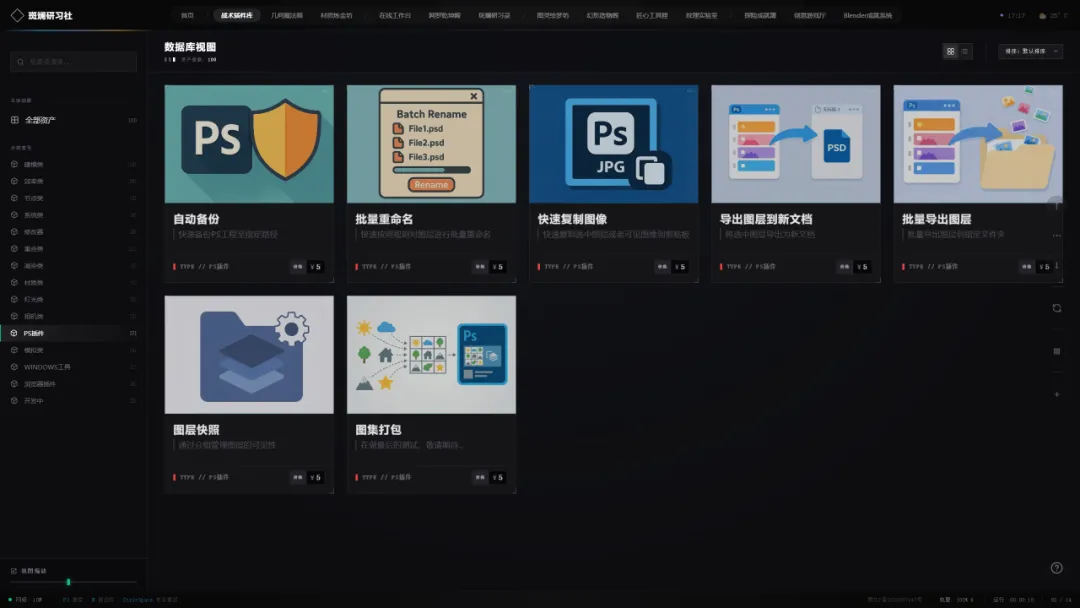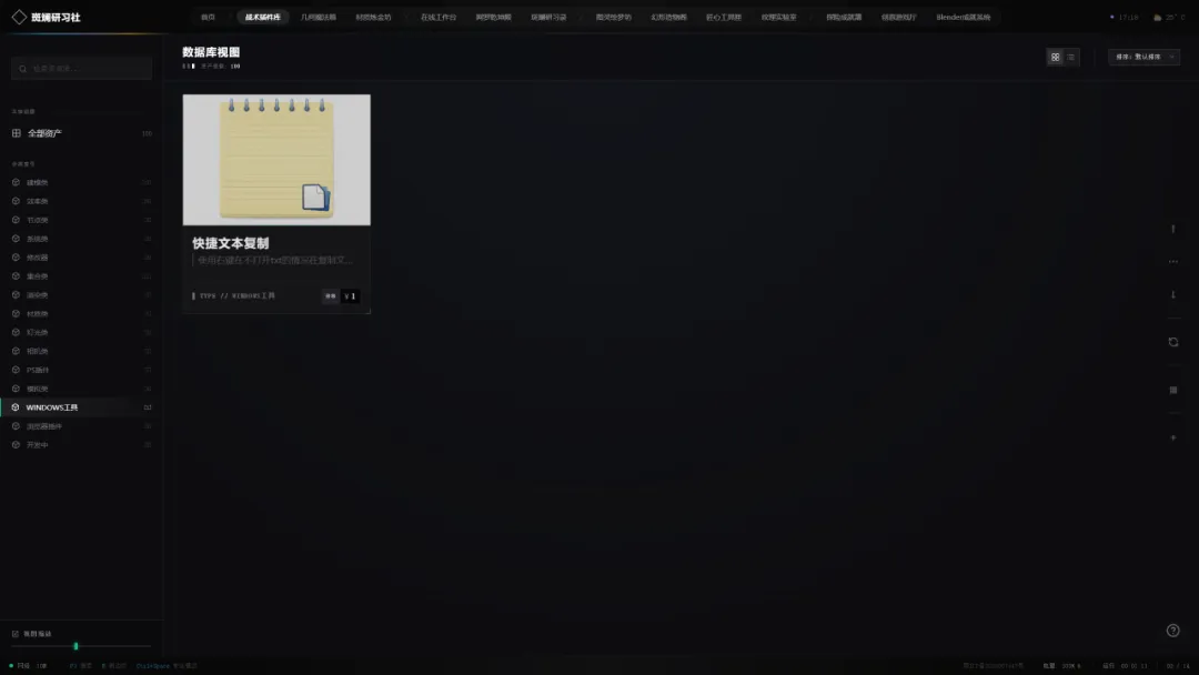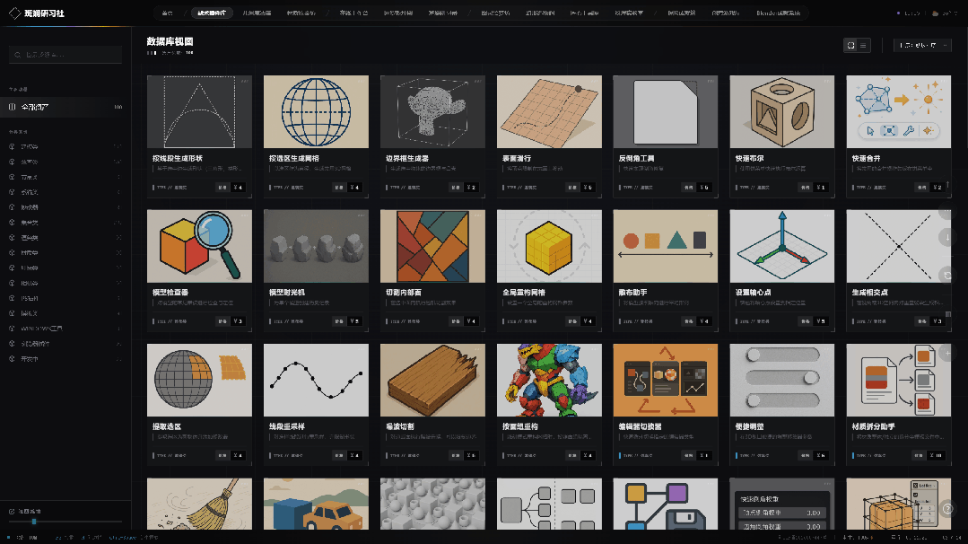 左侧面板内置模块化分类索引,配合毫秒级极速检索,帮你从海量“数字军火”中瞬间锁定所需模块。