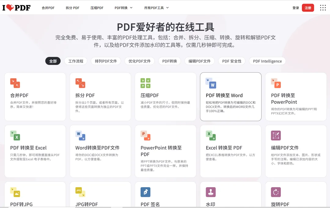 好用免费的PDF工具——iLovePDF