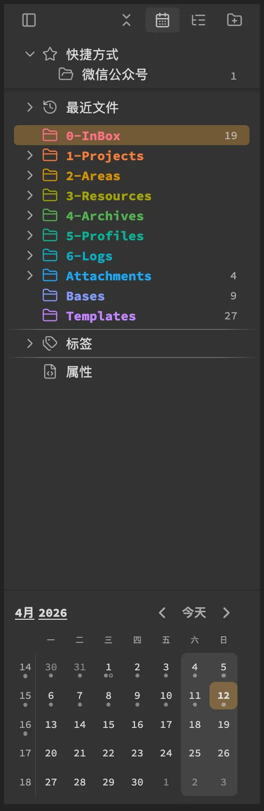用双窗格界面替代默认的文件浏览器,左侧显示文件夹结构,右侧显示文件预览。支持拖拽操作、键盘导航、自定义显示选项,让文件管理更加高效直观。(这是我刚装的插件,直接替换原来5个插件,如Calendar日历、Recent Files近期文件、Tag Wrangler标签维护、Iconize文件和文件夹图标维护、Folder Notes文件夹笔记,核心插件的日记也替换了,而且日记的存放结构可以自定义,非常好。)