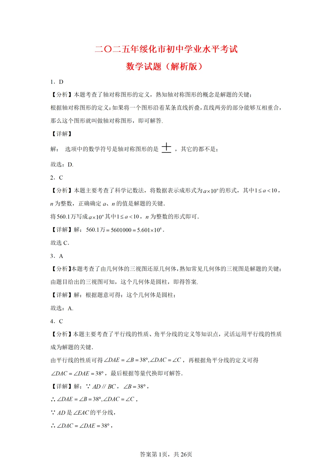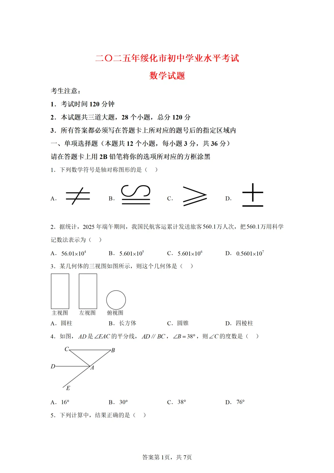 可下载:2025年中考数学【黑龙江省绥化市卷】(含解析) 原卷版(答案在后面) 关注公众号,回复:电子版 自动领 关注公众号,回复:电子版 自动领 解析版 关注公众号,回复:电子版 自动领 关注公众号,回复:电子版 自动领 关注公众号,回复:电子版 自动领 关注公众号,回复:电子版 自动领 (试卷著作权归属于相关教育部门) 关注公众号,回复:电子版 自动领