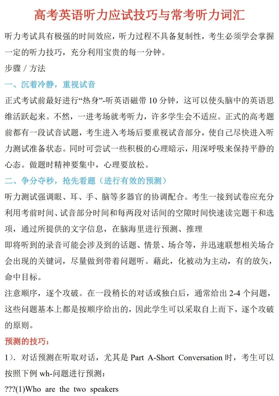 高考英语听力应试技巧与常考听力词汇(可打印)