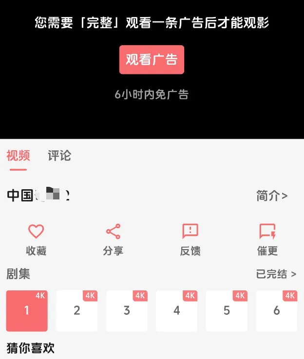 在实测的时候,提示观看广告可以无广6小时,但并没弹出广告,我这个可能是绿化版的,官方的一般都会植入广告,绿化版不好的就是一定时间后会被强制更新,视频的加载速度很快,可以保证流畅看剧。