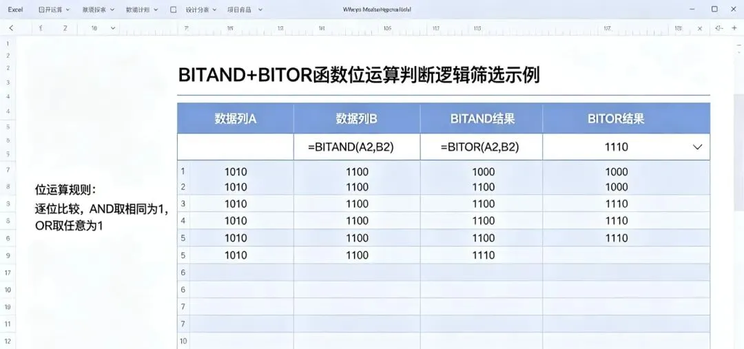 技巧1:BITAND+BITOR 函数组合(位运算判断,逻辑筛选更高效)