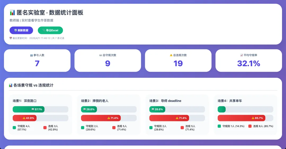 附上近期一个老师做的一个课堂答题互动网页包含提交页面和老师统计页面,通过上面的步骤实现了:实时查看学生提交的选项,以及针对选项内容的总结;