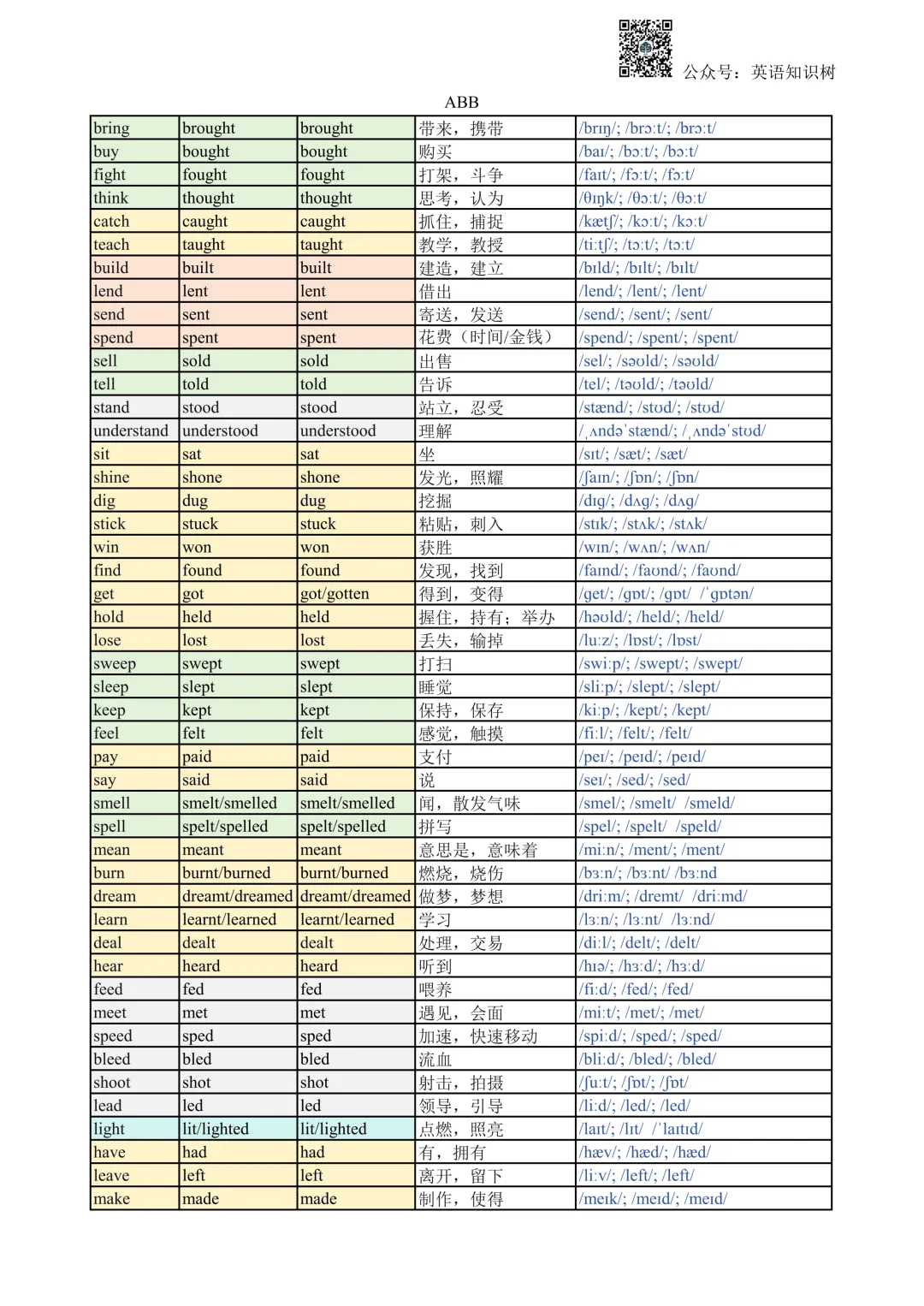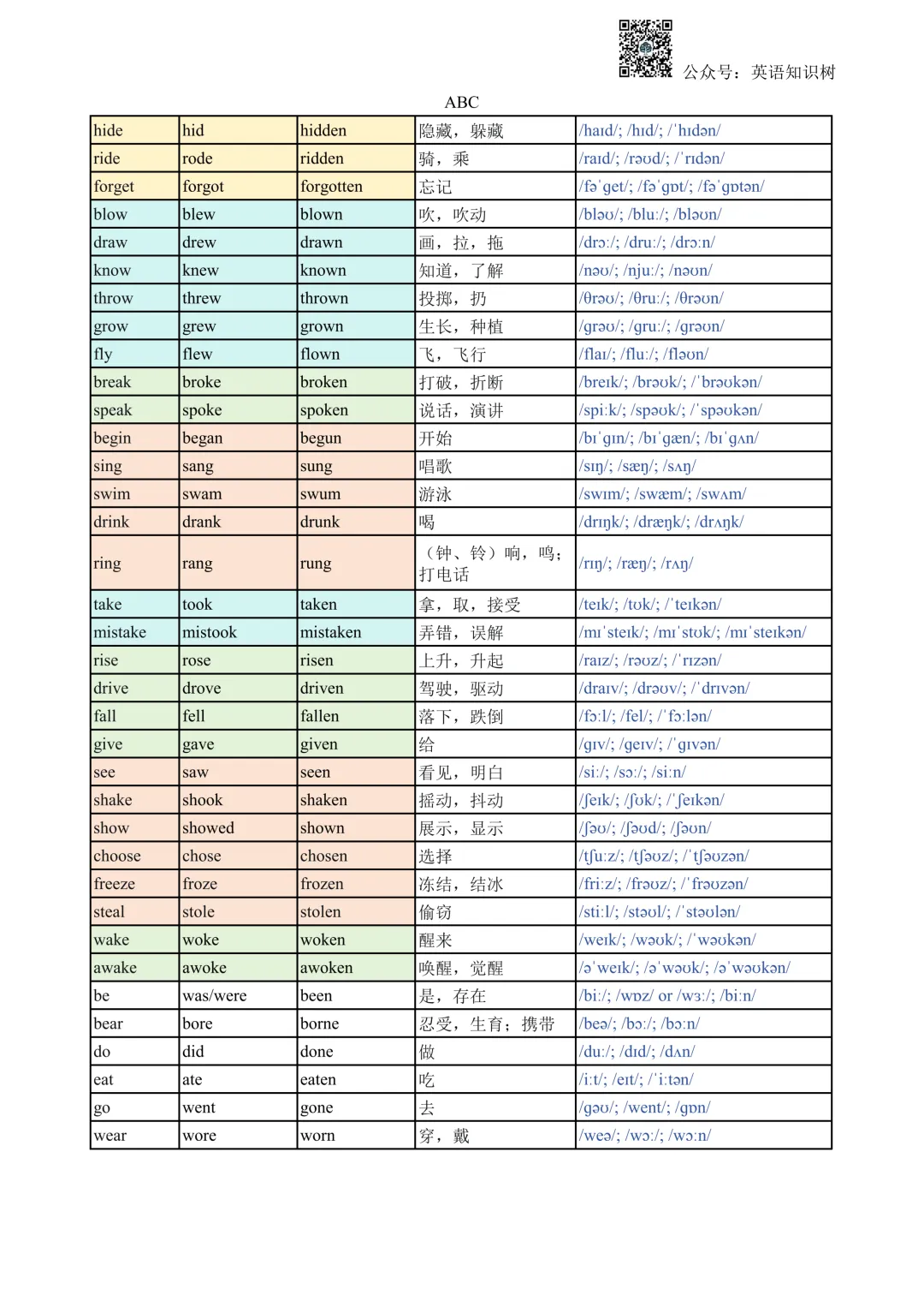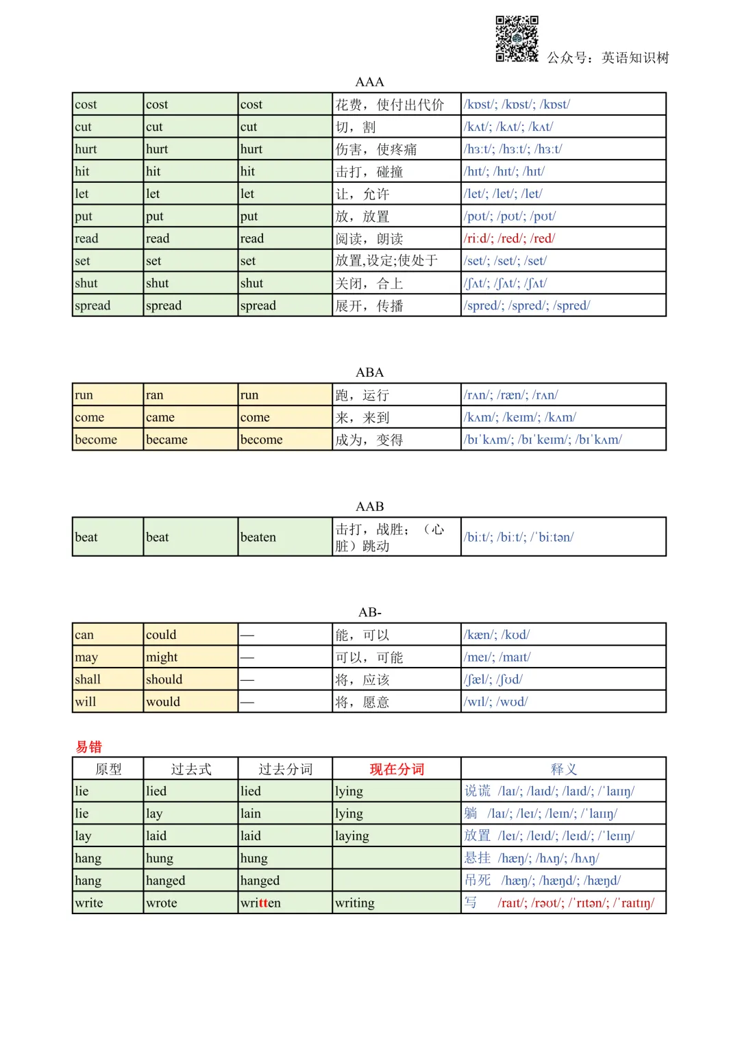 中考过去式过去分词速记(可下载打印) 回复:中考过去式 ,即可免费获取完整文件下载链接。 长按下图二维码,进入“英语知识树”界面 回复:中考过去式,即可免费获取完整文件下载链接。 ⭐ 更多中考英语&提分干货,请关注公众号:英语知识树 👆 长按识别二维码,关注「英语知识树」获取更多中考英语策略 意见建议请联系微信 motorhero888
