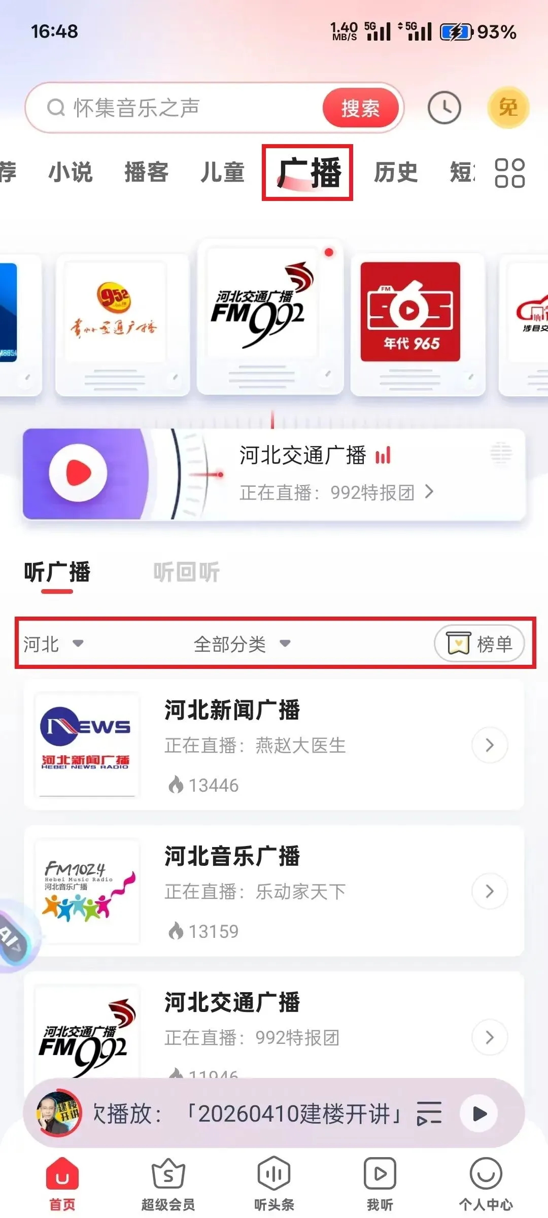 这个大家应该不陌生,尤其是公务人员,手机上都有吧,肯定是需要注册登录的,流程我就不赘述了,如有需要我再单开文章说。打开后先点右下角的“电台”,再点上边的“广播”,中间红框处可以选择广播类型。
