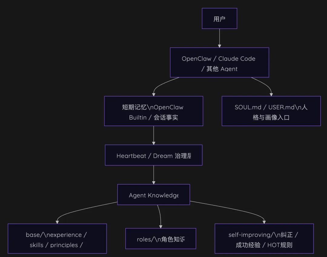 也就是从这个阶段开始,我开始把几个东西放到一起看:规则怎么生效,偏好怎么留存,成功经验怎么写下来,错误怎么沉淀,会话结束以后哪些内容应该进入长期层。