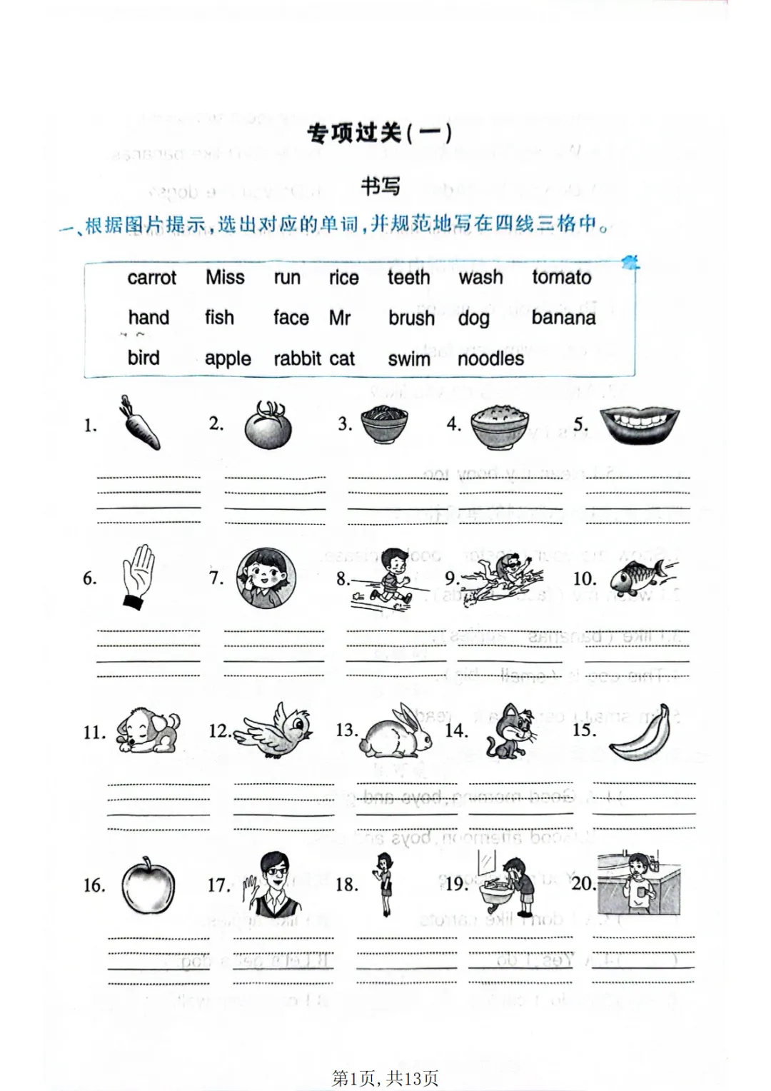 【免费下载】一年级(下)英语 六大专项素养测试卷《人教版PEP》,PDF电子版,可打印