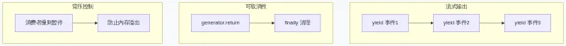 这不是”都能用,AsyncGenerator 稍微更好”的选择——这是”其他方案都有硬性短板,AsyncGenerator 是刚刚好的答案”的选择。