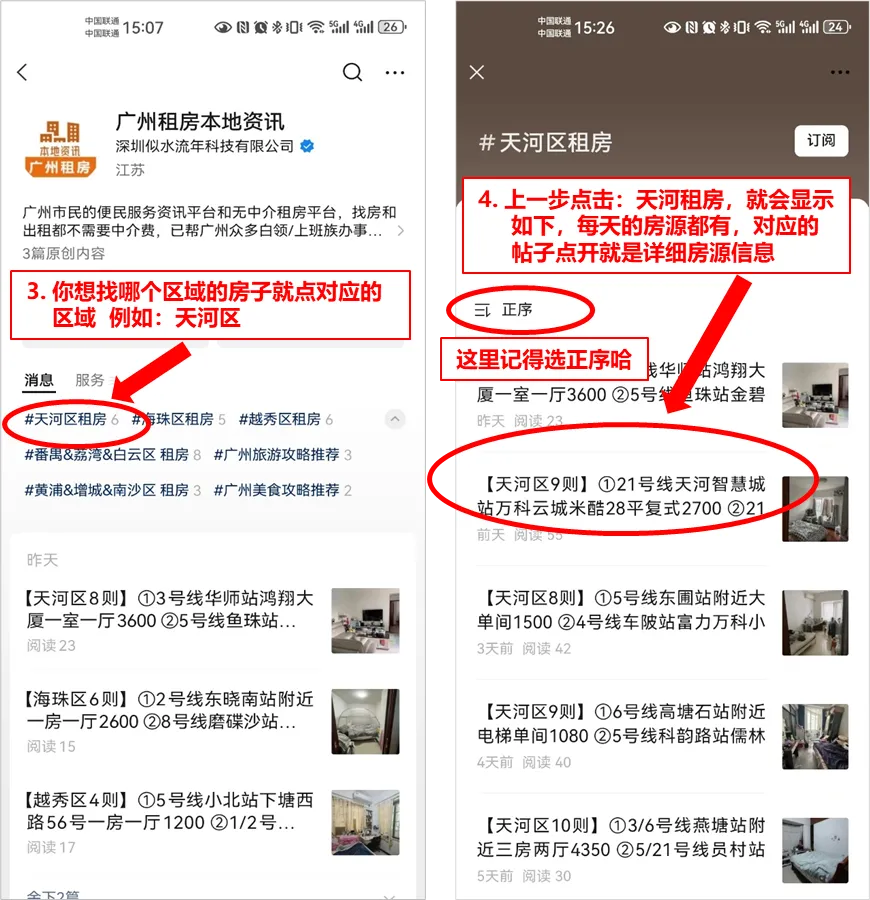 方式二,查看对应区域(如:天河区)最近发布的房源