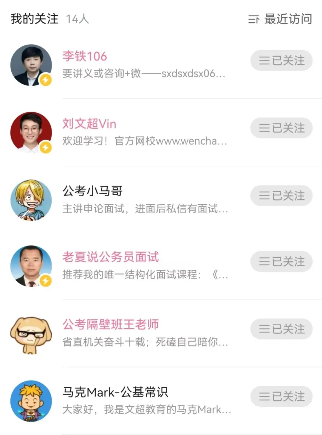 刘文超主页有行测各模块课程,马克及小马哥也属于文超教育,马克的公基常识非常细致全面,都是免费课程,在b站即可跟学。李铁的公基常识更侧重研究河南考情,备考河南5月事业编联考的小伙伴可以选择;公考隔壁班王老师主要用于学习人民日报范文,一天一篇,拆解学习;2023年湖北普选进面就是跟老夏的免费课程学的面试,当然免费课程只够入门,但老夏讲面试紧扣问题联系实际的思路还是非常值得学习的。此外,巾神(网友红领巾)也有账号分享行测备考学习经验。肯定还有很多宝藏学习资源,以上只是小编个人备考常看。