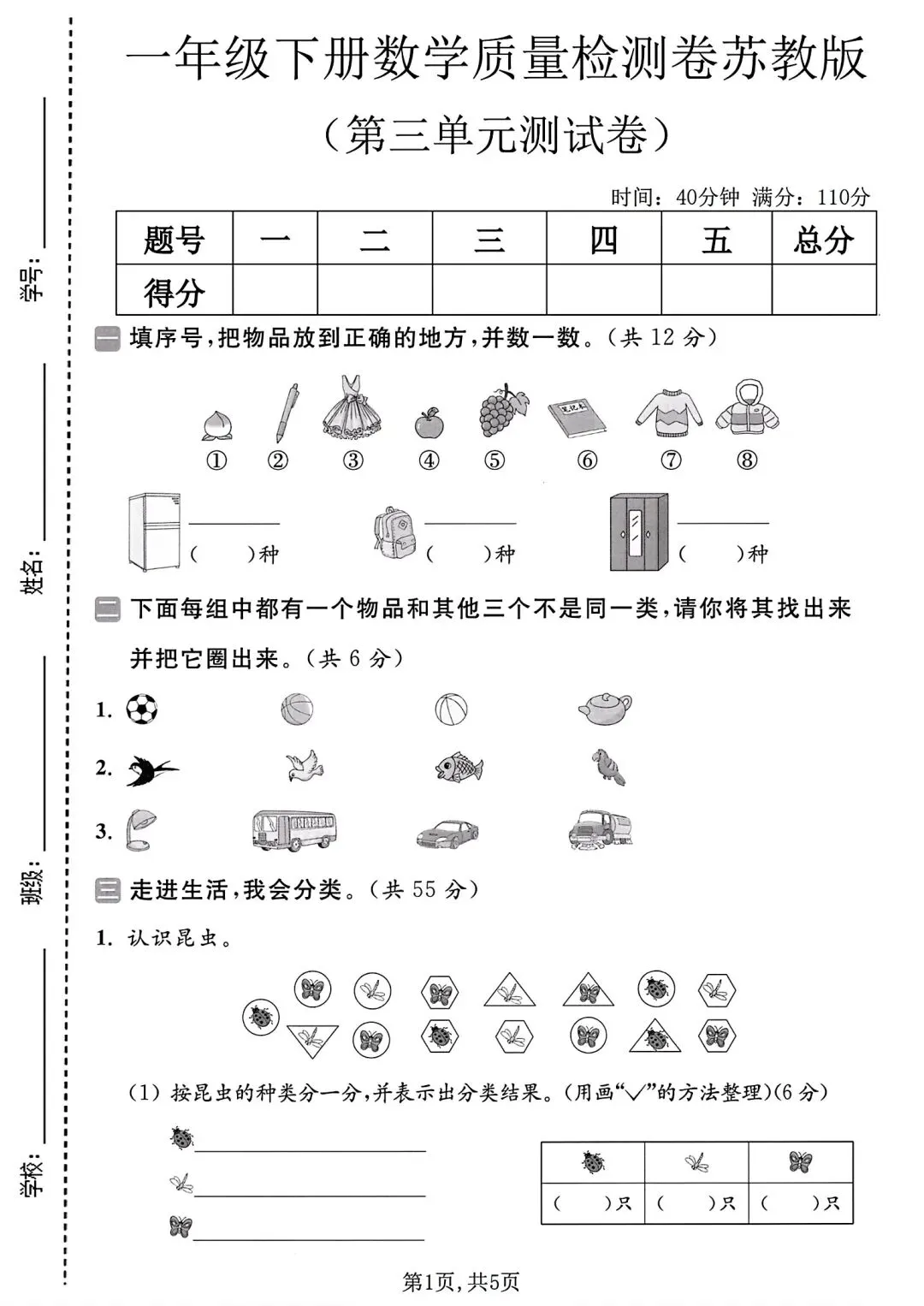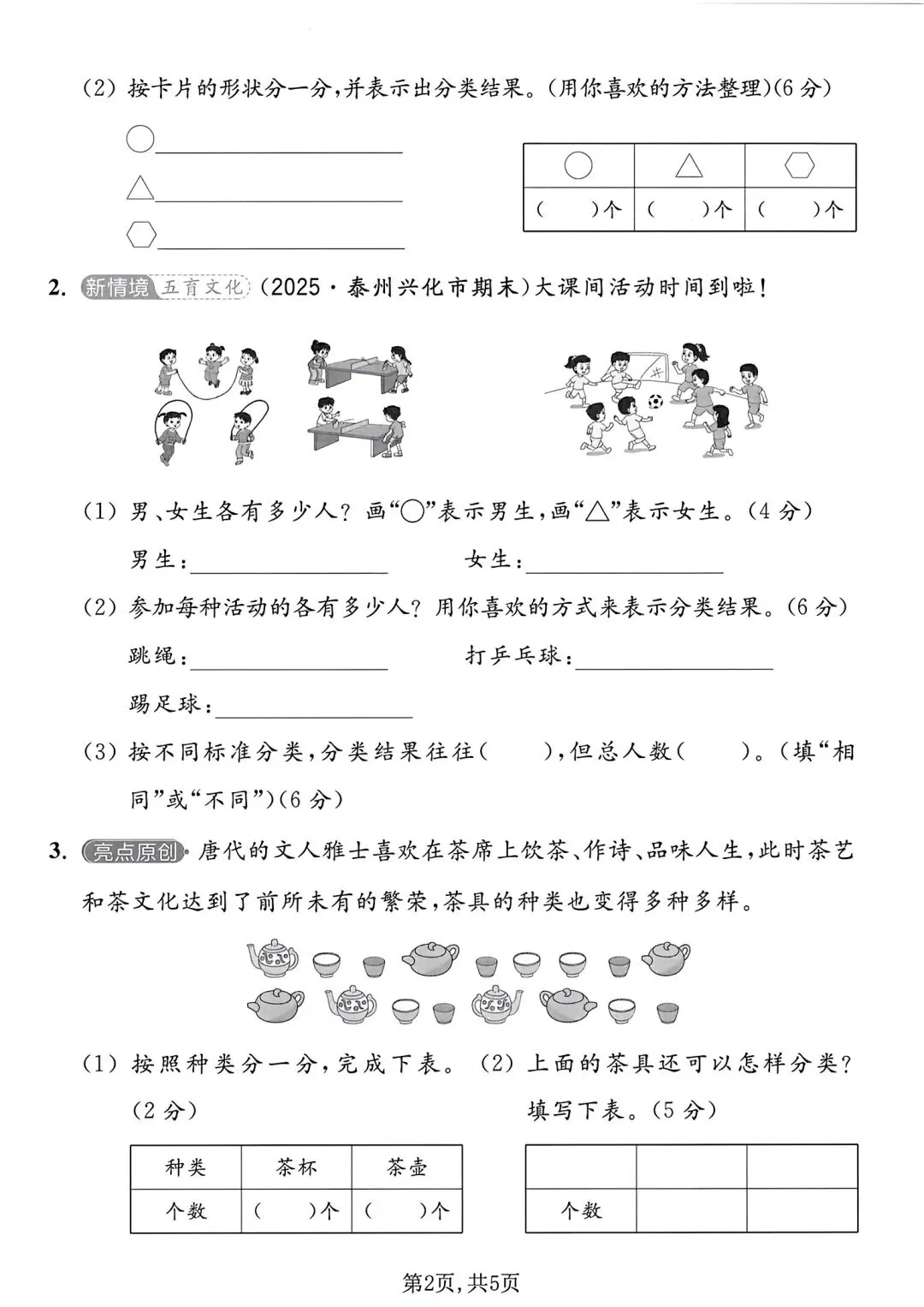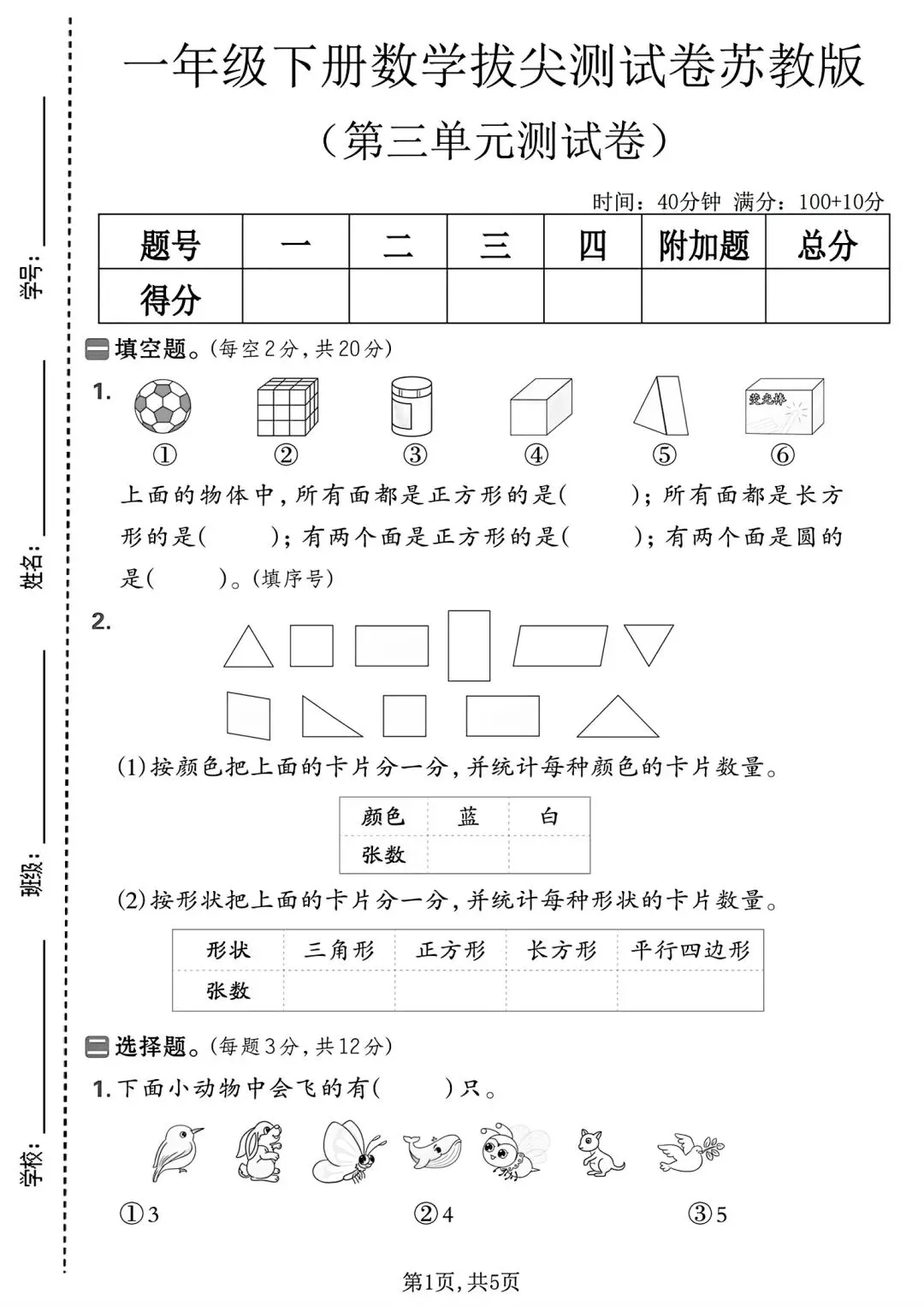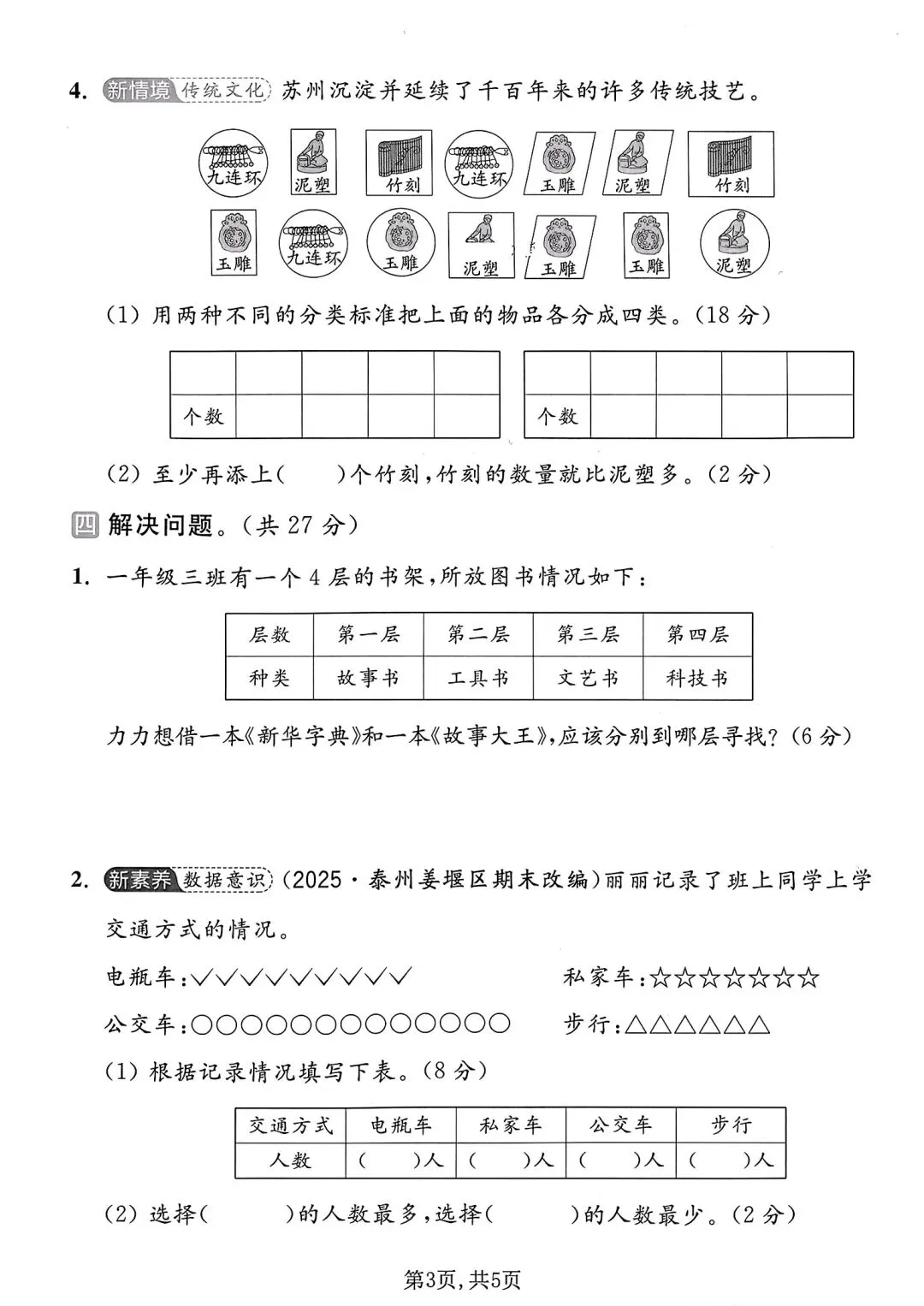 拔尖测试卷增加立体图形判断、分类统计、垃圾分类实操与复杂解决问题,侧重逻辑与应用拔高,适合培优冲刺。