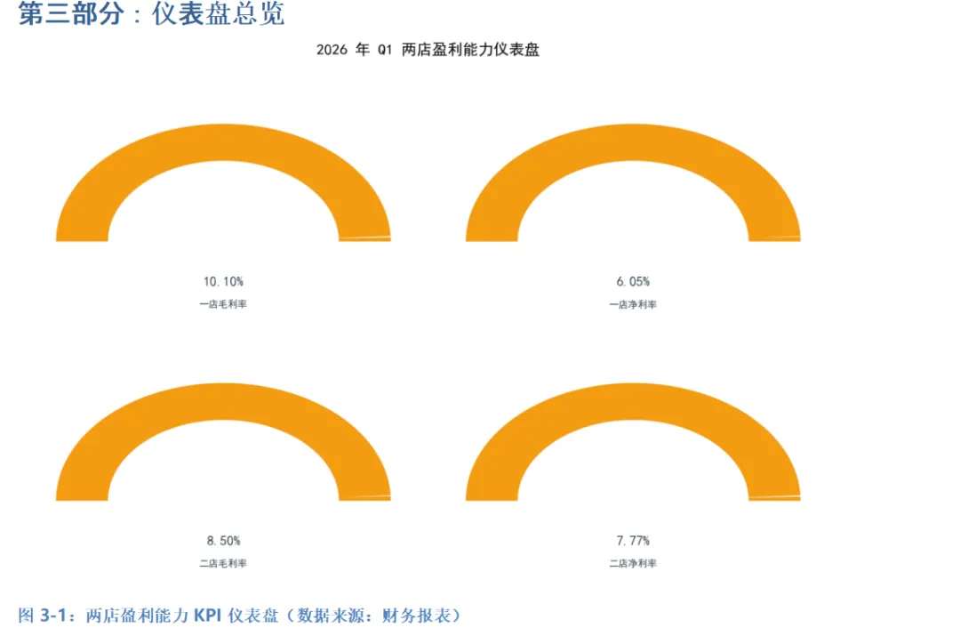 第二部分,单店深度分析。 每家店的资本结构、盈利能力、营运效率拆开说,一店重点讲成本结构,二店重点标了资金风险。