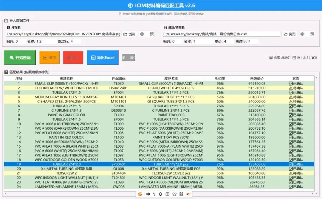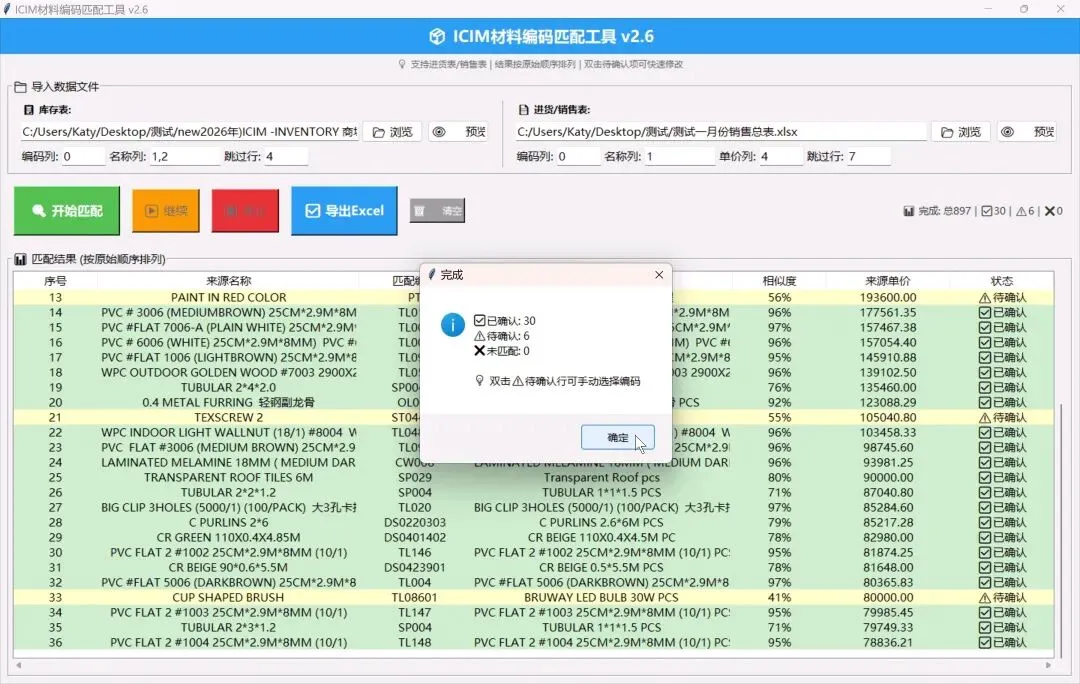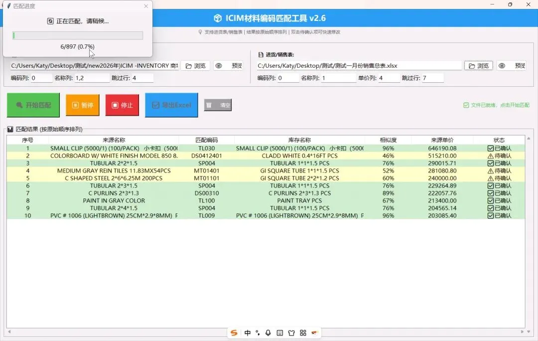 – ✅ 双表智能匹配:库存表 × 进货/销售表,一键对齐